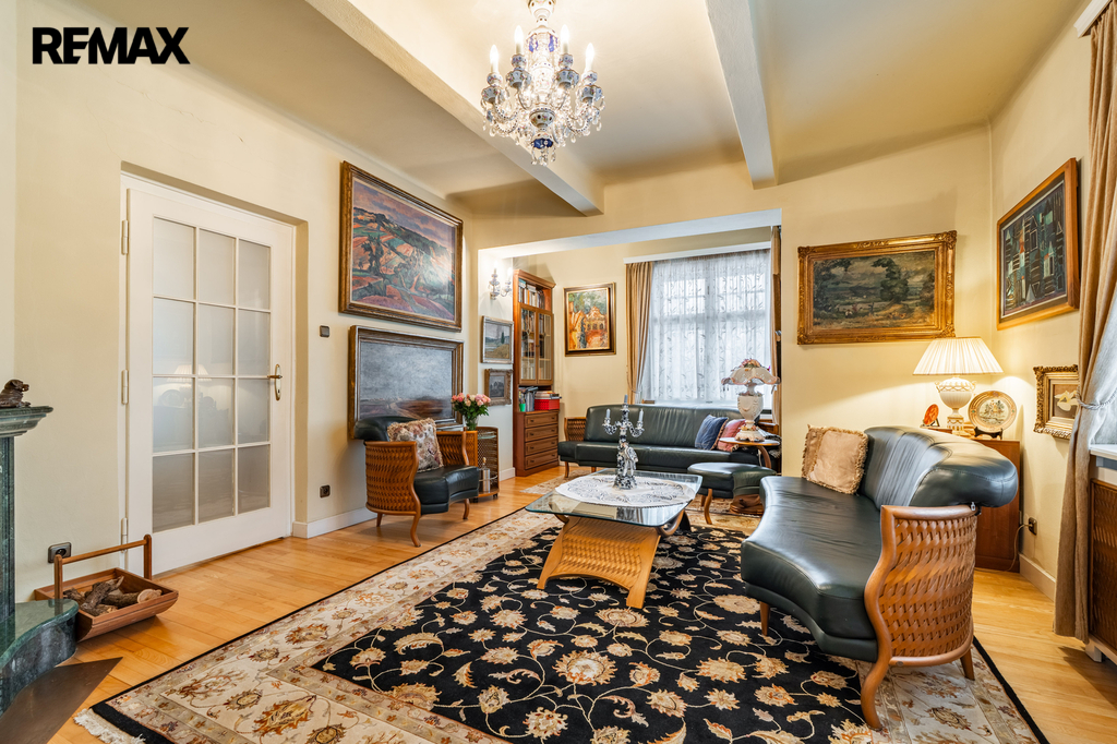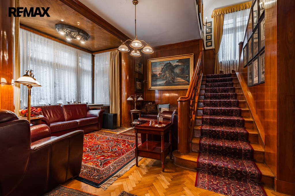 Vila, pod níž je podepsán architekt Jan Chládek, dýchá atmosférou zlaté éry první republiky. Hřejivé tóny fasády s členitými arkýři ukrývají interiér, kde se historie snoubí s absolutním luxusem té doby. Každý detail byl navržen s důrazem na prvotřídní materiály: schodiště, obložení a unikátní pánský salon jsou mistrovsky vyvedeny z jasanového dřeva, podlahy koupelen v provedení masivní švédské žuly a vysoké kazetové stropy dotvářejí majestátní atmosféru. Dům nabízí velkorysý prostor pro vícegenerační bydlení i možnost oddělit reprezentativní firemní sídlo.