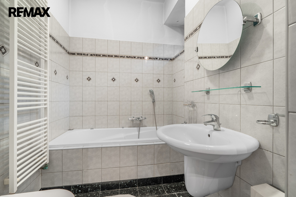 • Přízemí: Vstupní hala s šatnou a samostatný byt 3+1 tvořený ložnicí, kuchyní, obývacím pokojem s krbem, pracovnou a koupelnou.