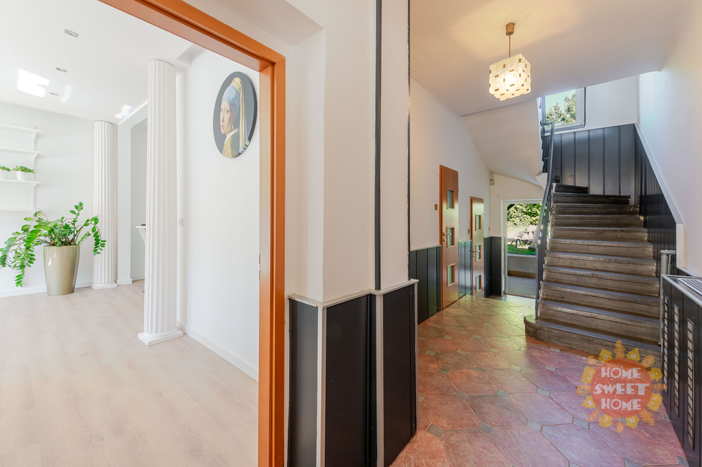Hala, dvě ložnice, dvě šatny a koupelna s vanou a toaletou.