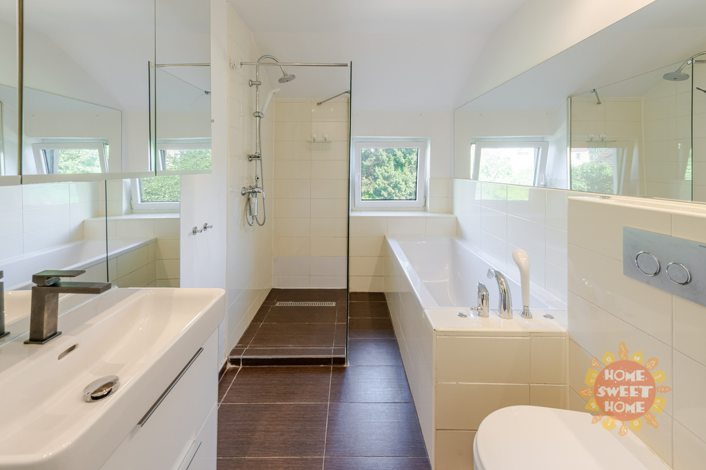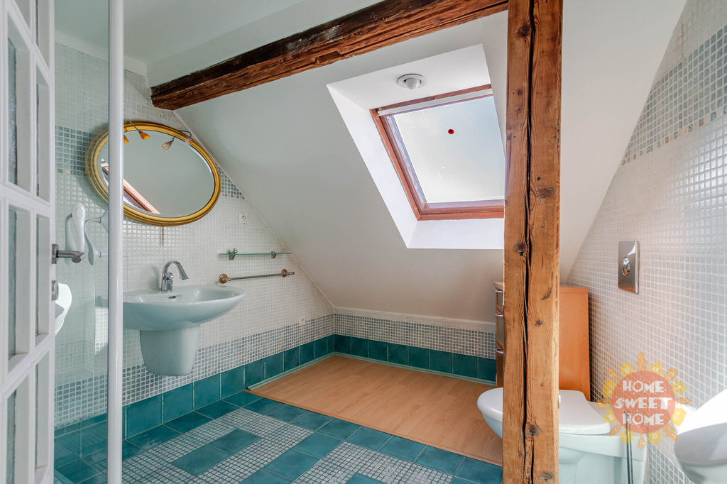 Další obývací pokoj (možno využít jako pracovnu či ložnici) a druhá koupelna se sprchovým koutem a toaletou.