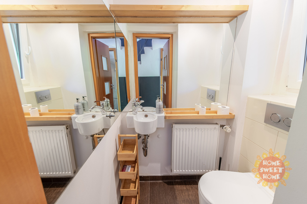 Další obývací pokoj (možno využít jako pracovnu či ložnici) a druhá koupelna se sprchovým koutem a toaletou.