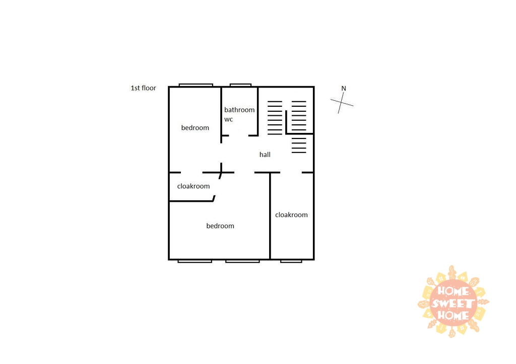 Hala, dvě ložnice, dvě šatny a koupelna s vanou a toaletou.
