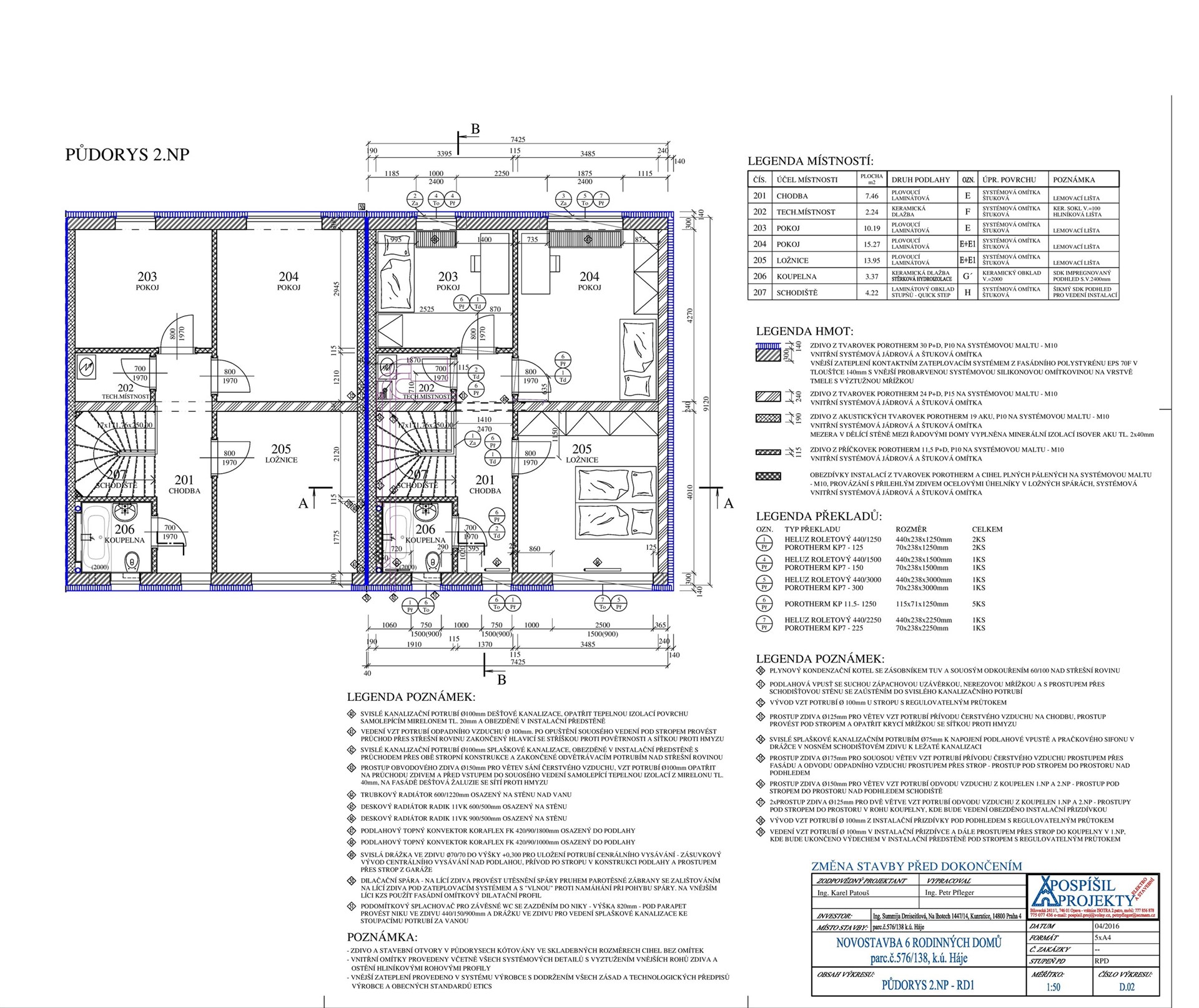 Dům je rozložen do dvou podlaží s podlahovou plochou 110 m². Obytná plocha 95 m² je rozdělena do dispozice 4+kk, která zahrnuje čtyři pokoje a kuchyňský kout. Jižně orientovaná terasa o rozloze 16 m² zajišťuje dostatek světla po celý den. K domu patří také prostorná zahrada o rozloze 179 m², ideální pro relaxaci a rekreační aktivity, a 38 m² před domem pro parkování dalšího automobilu.
