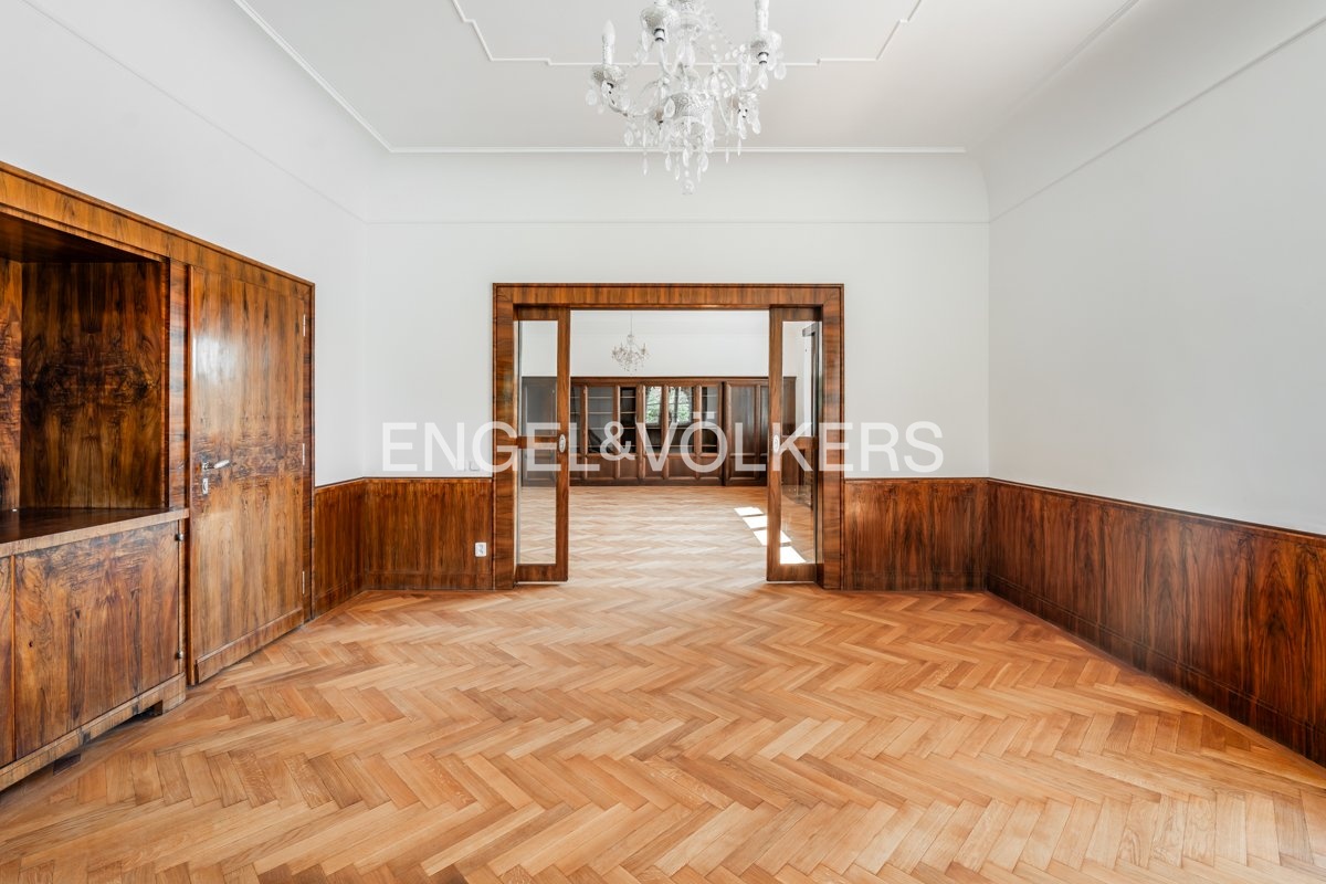 Byt je koncipován tak, aby nabízel dostatek soukromí a zároveň prostor pro reprezentativní účely. Díky tomu je ideální nejen pro pohodlné bydlení, ale i pro kombinaci s kanceláří nebo pracovnou. K dispozici je samostatná ložnice orientovaná do ulice Komornická, světlý obytný prostor s přípravou na kuchyňskou linku a budoucí pracovna propojená posuvnými historickými dveřmi. Součástí vybavení jsou dvě koupelny, samostatná toaleta a úklidová místnost. Příjemným bonusem je malý balkon směřující do ulice.