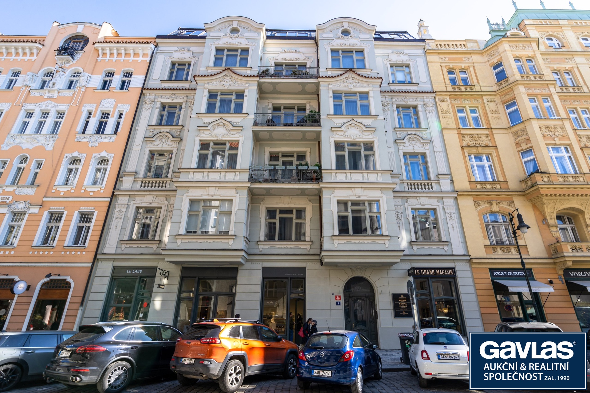 Prostorný byt o dispozici 3+kk je umístěn ve 3. nadzemním podlaží činžovního domu z roku 1890 s prvky rané secese, v prestižní ulici Vězeňská, v samém srdci Starého Města, jen pár kroků od Staroměstského náměstí.