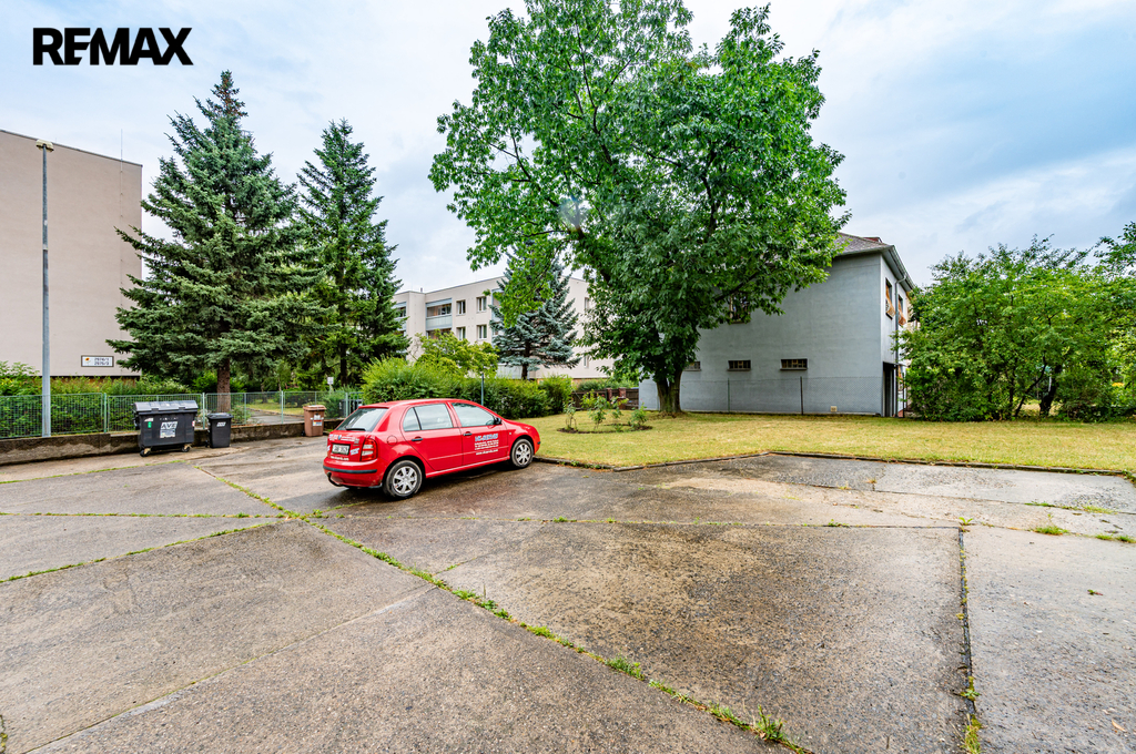Bytový dům se nachází na oploceném pozemku s udržovanou zelení a parkovací zónou pro obyvatele domu.