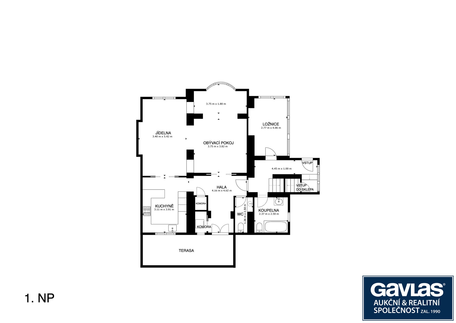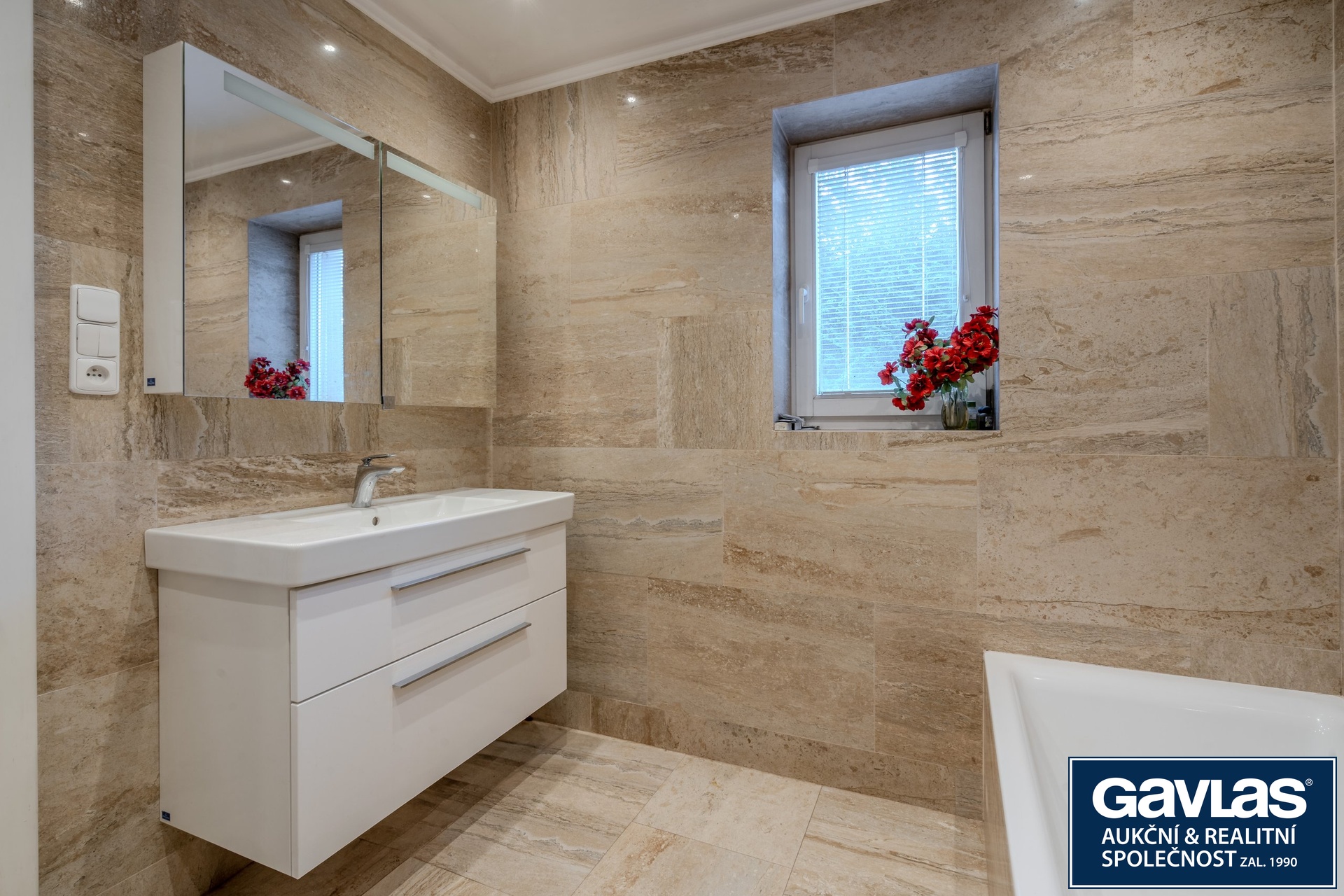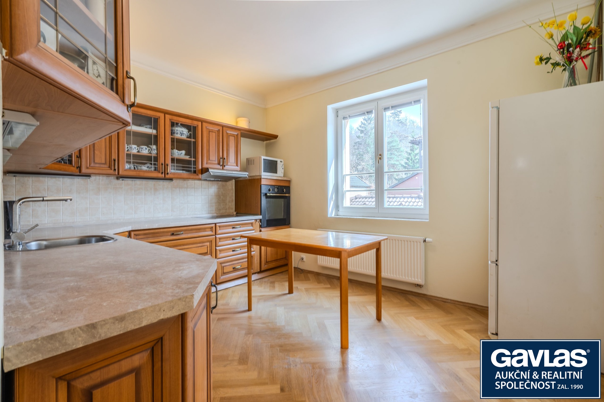 Velkoryse řešená vila nabízí komfortní dispozici o osmi obytných místnostech, doplněnou o dvě kuchyně, dvě koupelny, tři toalety a suterénní prostory.