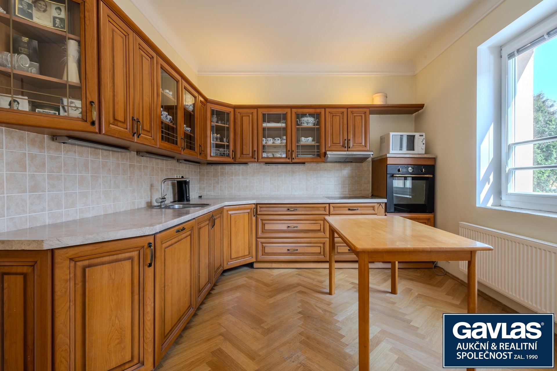Velkoryse řešená vila nabízí komfortní dispozici o osmi obytných místnostech, doplněnou o dvě kuchyně, dvě koupelny, tři toalety a suterénní prostory.