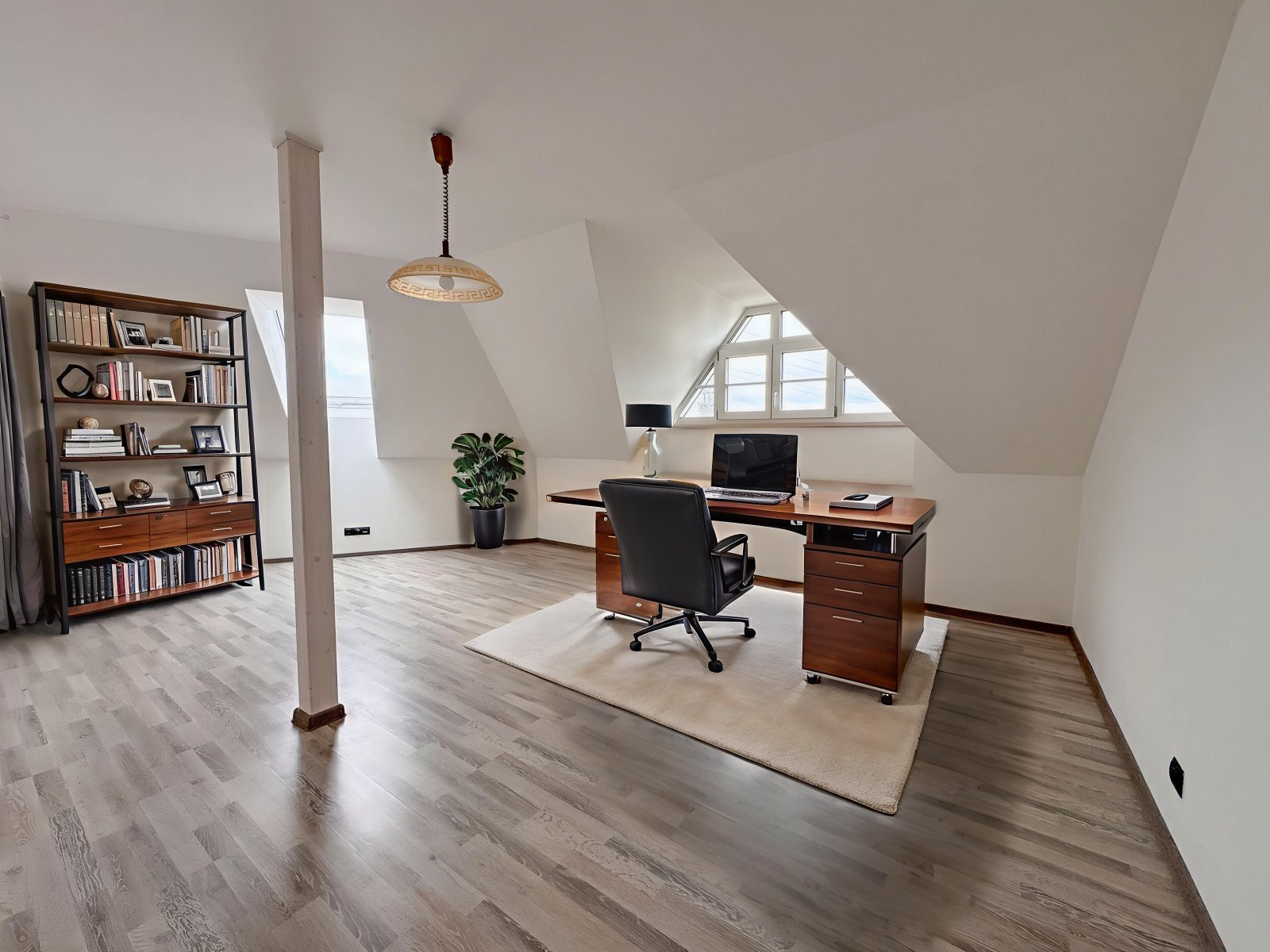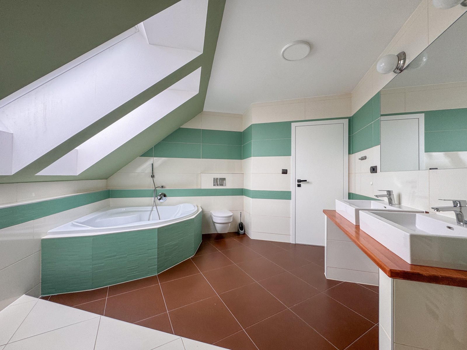 V podkroví najdete světlou chodbu, tři samostatné ložnice a hlavní koupelnu s vanou a dvojumyvadlem. Dominantou podlaží je mimořádně velká místnost o ploše cca 98 m², která nabízí široké možnosti využití – může sloužit jako velký obývací pokoj, herna pro děti, domácí fitness, ateliér nebo společenský prostor pro rodinu i přátele.