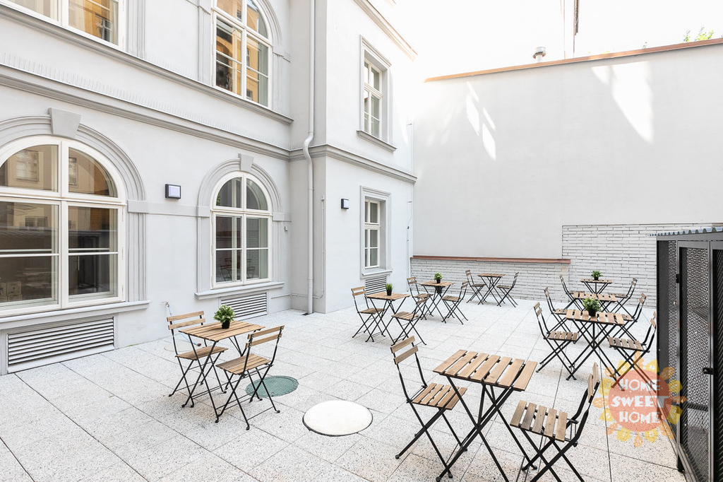 Krásný zařízený pokoj 17m² se společnou kuchyní a jídelním koutem, koupelnou se sprchou a WC se nachází v Rezidenci Kinský v pátém patře cihlového domu v ulici Kinských, Praha 5. Dům byl kompletně zrekonstruován v roce 2019. Pokoj je kompletně zařízený. Nachází se v 3 pokojovém bytě. Úklid společných prostor je již zahrnut v nájemném jednou týdně. K dispozici je také bezplatná posilovna, prádelna na mince, společná terasa a v každém apartmánu je mop, vysavač a žehlicí prkno.