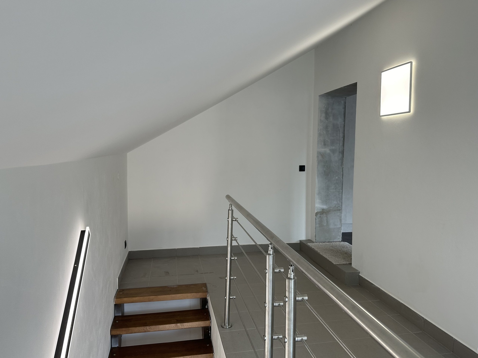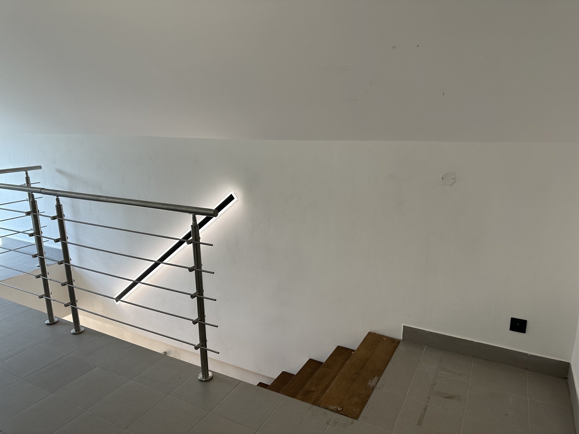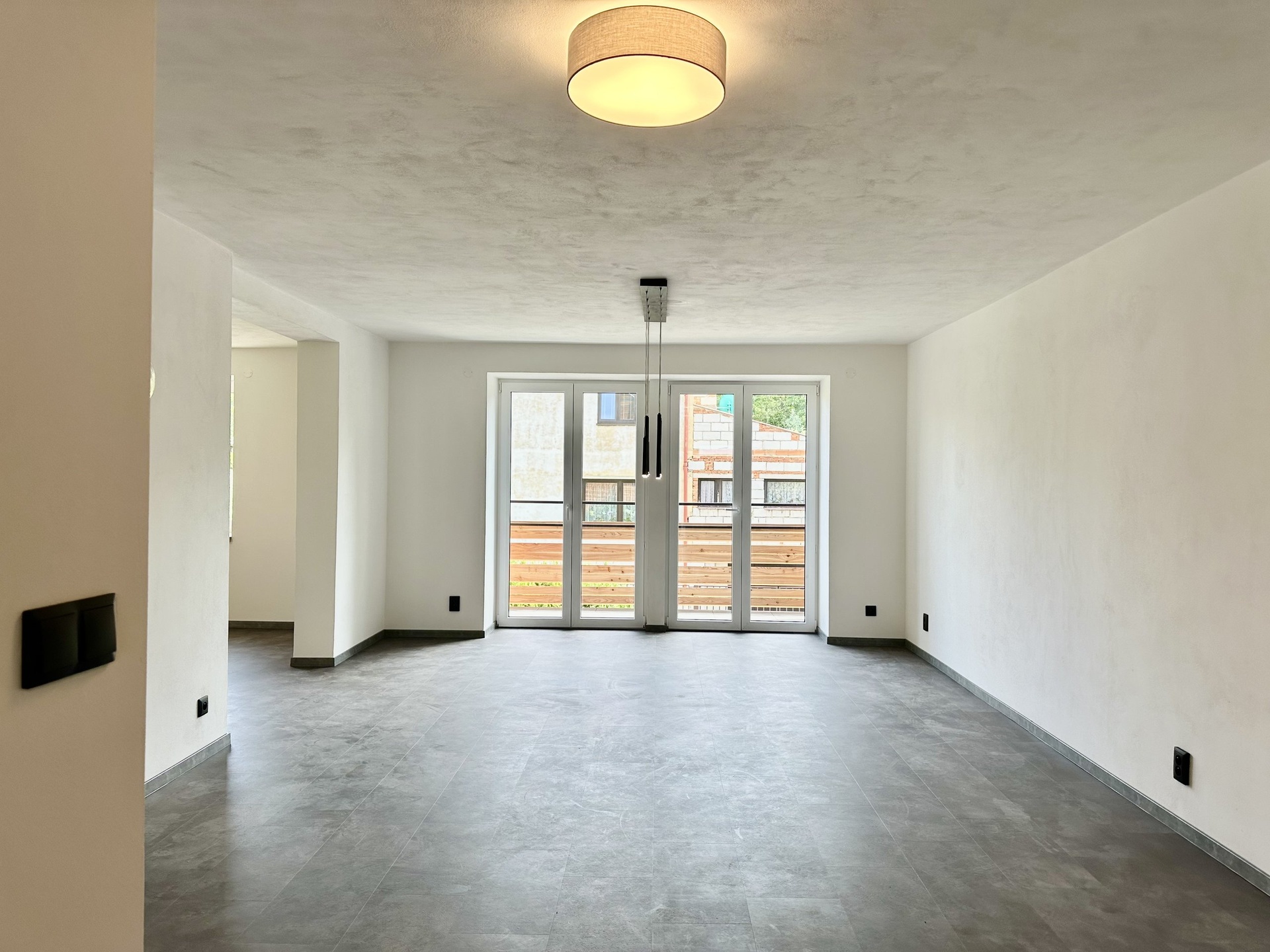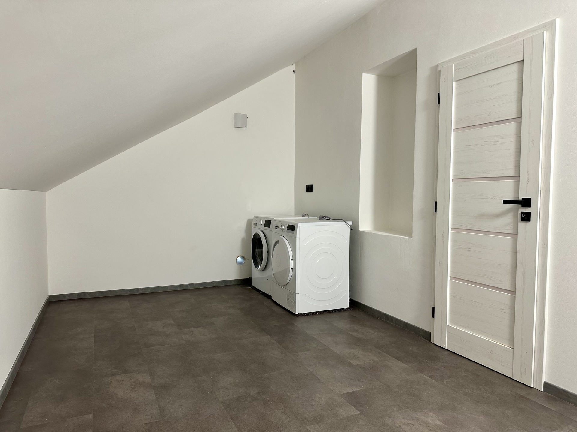 Bytová jednotka má samostatný vstup do domu. V přízemí se nachází vstupní prostor 15m² s dostatkem úložného místa (např. i kočárku, kola, motorky, apod..), do obytné části v 2.NP vede prostorné schodiště s předsíňovou částí 16m², která je oddělená dveřmi za kterými se nachází prostorný obývací pokoj s kuch. koutem 71m², balkon, komora s pračkou Siemens a sušičkou Bosch, ložnice 17m² koupelna s vanou i sprchovým koutem, samostatné WC. Nová kuchyňská linka je vybavena vestavnými spotřebiči (indukční varná deska, horkovzdušná. el. trouba s grilem, mikrovlná trouba, lednice s mrazákem, digestoř vše Whirlpool)