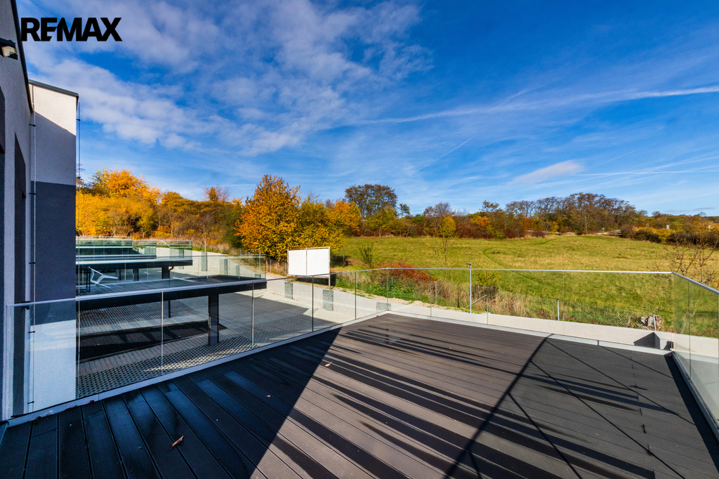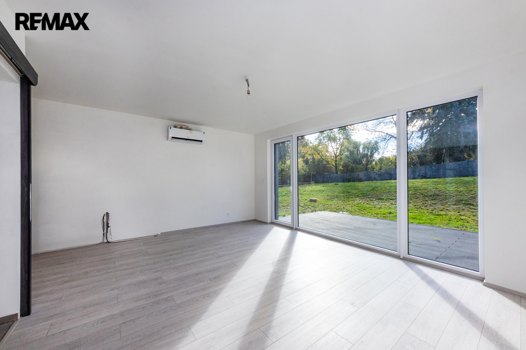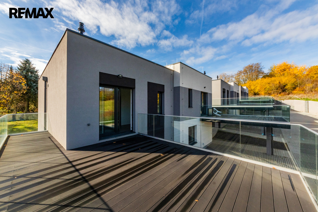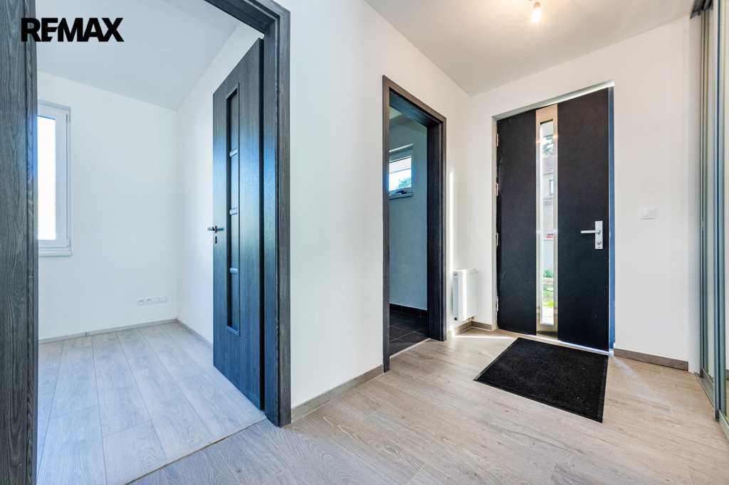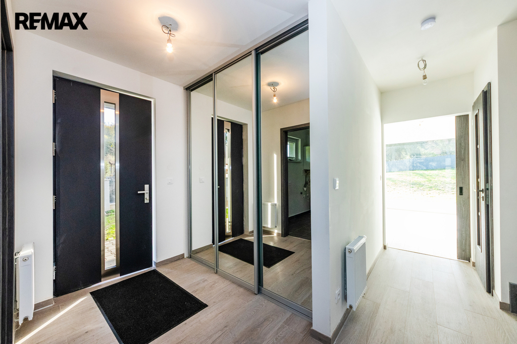 Vybavení domu odpovídá vysokému standardu – klimatizační systém LG s invertorem, kondenzační kotel BOSCH/Vaillant, plastová okna SALAMANDER s trojskly, laminátové podlahy Oak Light, koupelnová keramika Mexen, armatury Grohe, vany Kaldewei, dveře Lorient Jasan grafit, terasy z WPC kompozitu a vstupní dveře Thermo 64 Singen INO.