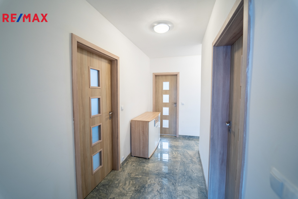 Společná chodba pro dva byty vedle sebe byt č. 2 o velikosti 2+kk/cca 34,37 m2 s koupelnou se sprchovým koutem a WC, byt má vlastní bojler, el. hodiny, je vybaven spotřebiči (lednice, el. sporák a trouba, digestoř, pračka, mikrovlnná trouba a nábytek).