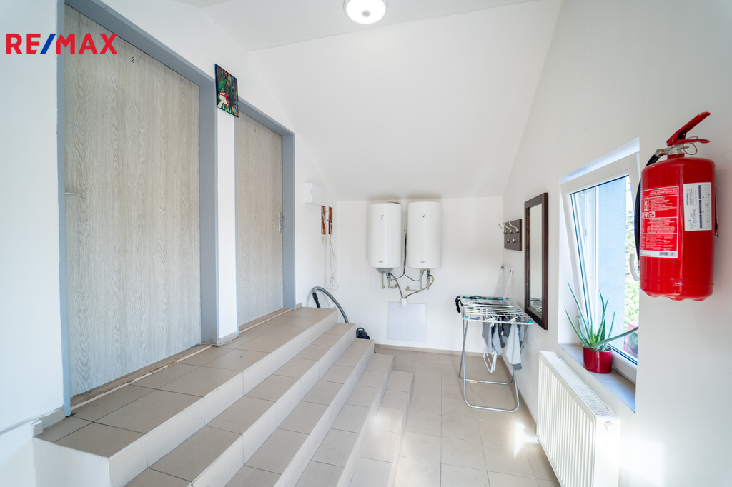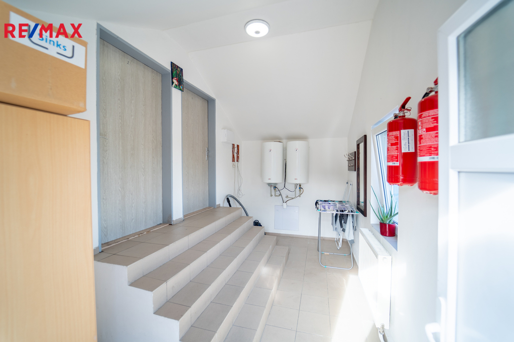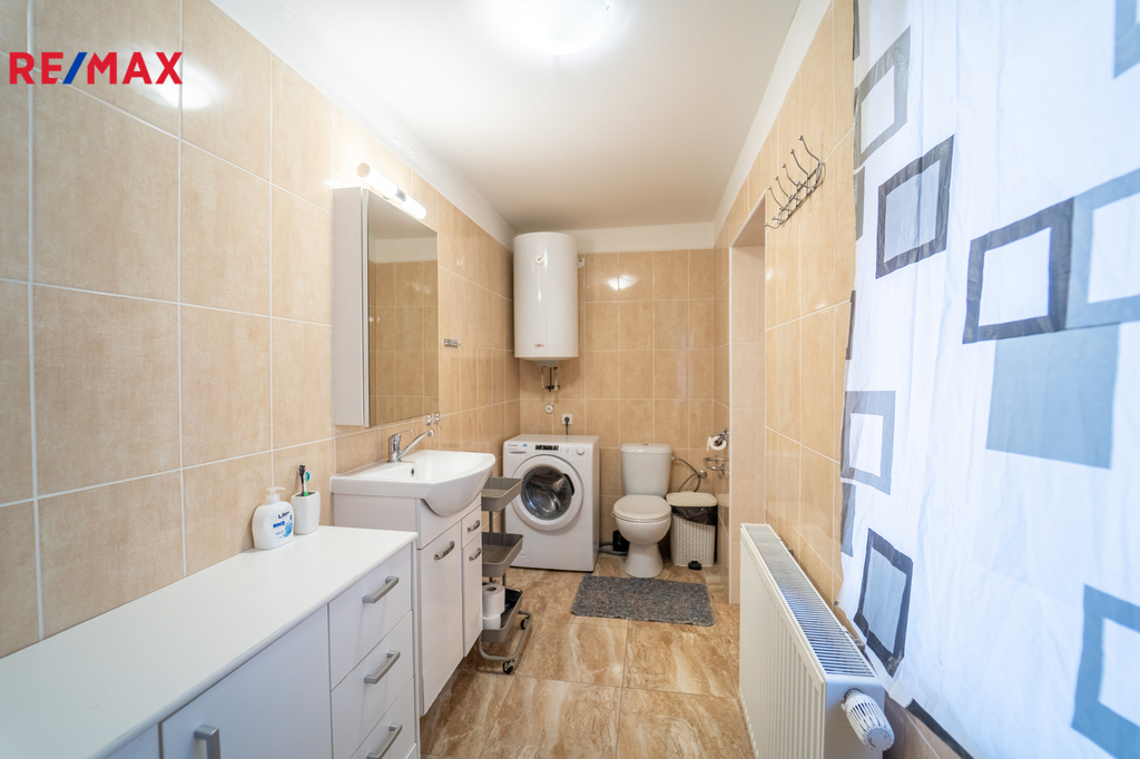 Dům je částečně podsklepený s komorou na potraviny, technickou místností s pračkou, sušičkou a bojlerem zn. DRAŽICE, 2 x pokoj a jedním pokojem pro hosty se samostatným vchodem z nádvoří. Obývací pokoj s oknem do ulice je součástí kuchyně s novou kuchyňskou linkou se spotřebiči, vše součástí domu a ceny. Spotřebiče: americká lednice zn. BEKO, horkovzdušná trouba zn. AEG, mikrovlnná trouba zn. Concept, sklokeramická deska zn. AEG, digestoř zn. Concept. Koupelna s rohovou vanou a sprchovým koutem, WC je samostatné s malým umyvadlem. Podlahy domu jsou plovoucí a kremnická dlažba s podlahovým topením v koupelně a v ostatních místnosti jsou osazeny radiátory.