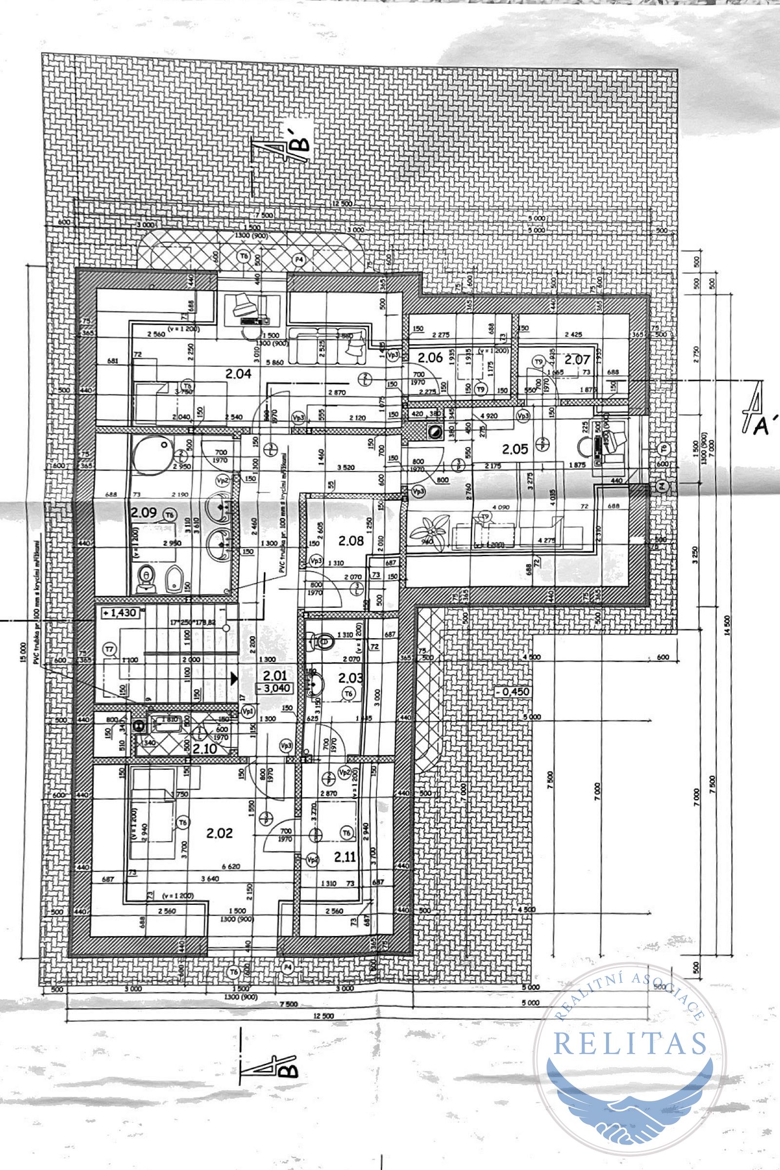 2. NP je řešeno jako klidová část domu, kde jsou umístěny tři ložnice s vlastními šatnami a tři koupelny. Dům je vytápěn plynovým kotlem.