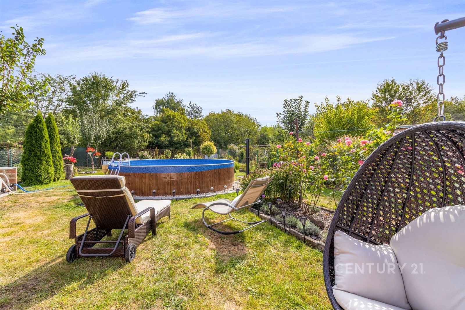 Za domem se rozkládá zahrada o velikosti 339 m², která nabízí dostatek prostoru pro zahradničení, odpočinek i volnočasové aktivity. Najdete zde pergolu pro letní posezení a grilování, bazén pro osvěžení v horkých dnech i vlastní studnu, která se postará o zavlažování celé zahrady.
