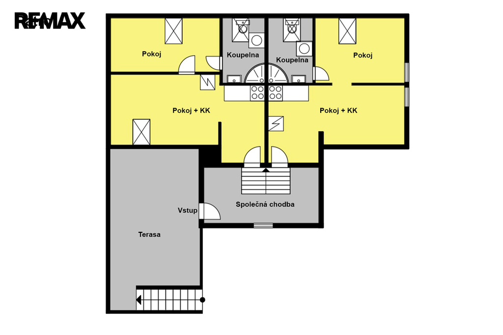 Byty jsou v současné chvíli pronajaty a zajištují měsíční výnos 65 000 Kč (není ovšem podmínkou, nájemníci jsou s prodejem seznámeni, záleží na preferencích nového vlastníka).
