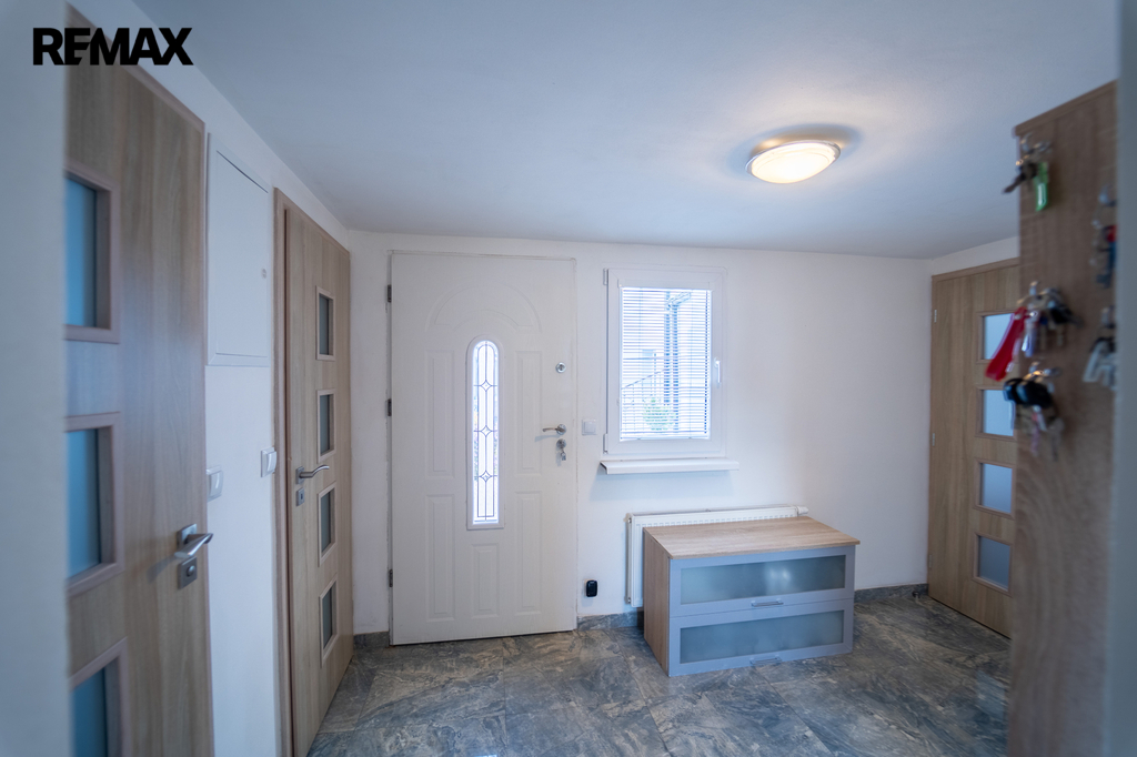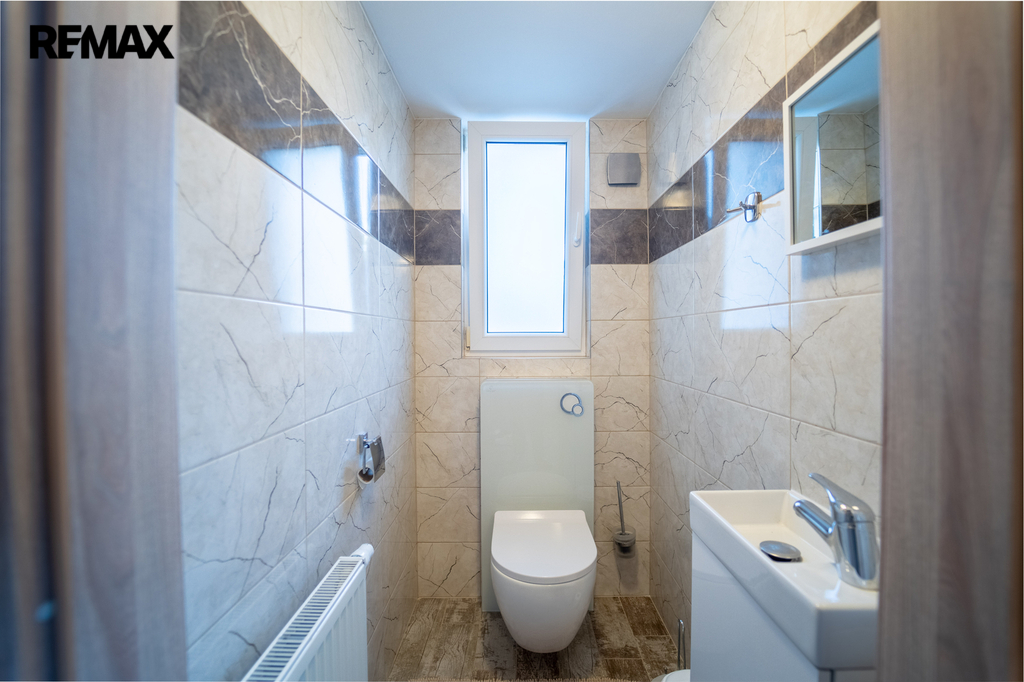 Dům je částečně podsklepený s komorou na potraviny, technickou místností s pračkou, sušičkou a bojlerem zn. DRAŽICE, 2 x pokoj a jedním pokojem pro hosty se samostatným vchodem z nádvoří. Obývací pokoj s oknem do ulice je součástí kuchyně s novou kuchyňskou linkou se spotřebiči, vše součástí domu a ceny. Spotřebiče: americká lednice zn. BEKO, horkovzdušná trouba zn. AEG, mikrovlnná trouba zn. Concept, sklokeramická deska zn. AEG, digestoř zn. Concept. Koupelna s rohovou vanou a sprchovým koutem, WC je samostatné s malým umyvadlem. Podlahy domu jsou plovoucí a kremnická dlažba s podlahovým topením v koupelně a v ostatních místnosti jsou osazeny radiátory.