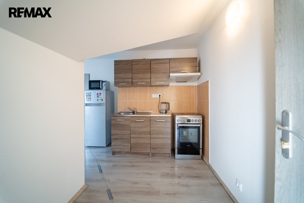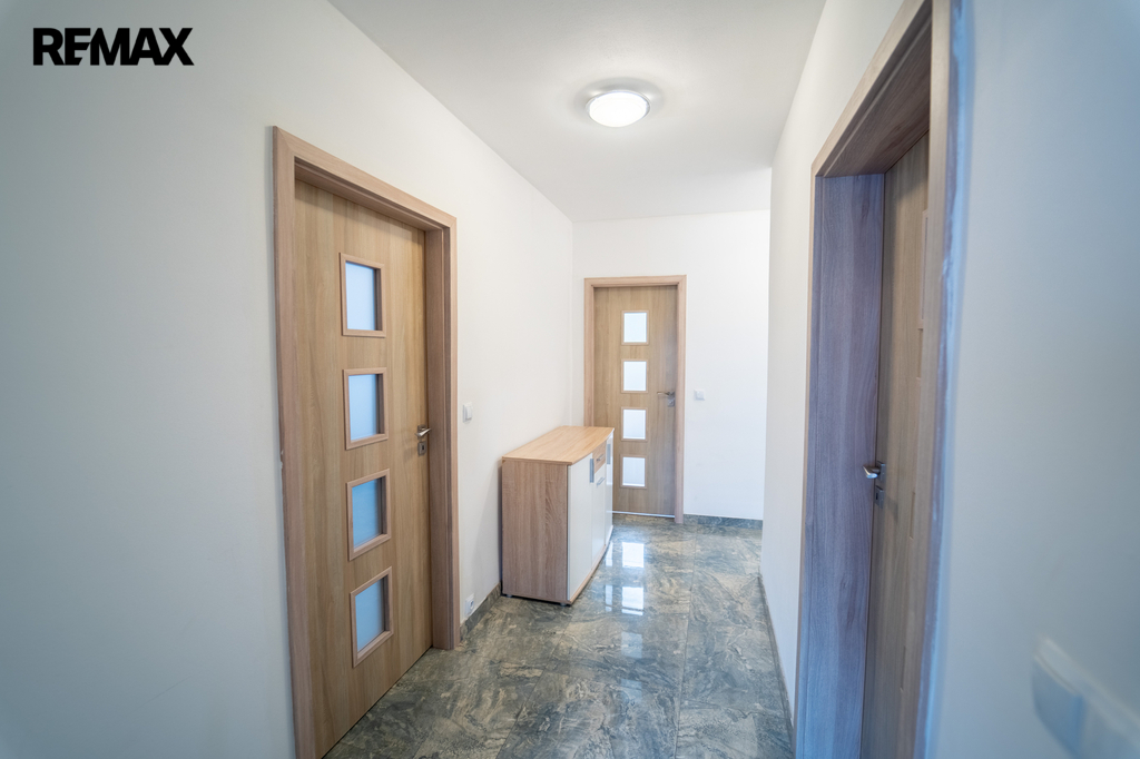 Společná chodba pro dva byty vedle sebe byt č. 2 o velikosti 2+kk/cca 34,37 m2 s koupelnou se sprchovým koutem a WC, byt má vlastní bojler, el. hodiny, je vybaven spotřebiči (lednice, el. sporák a trouba, digestoř, pračka, mikrovlnná trouba a nábytek).