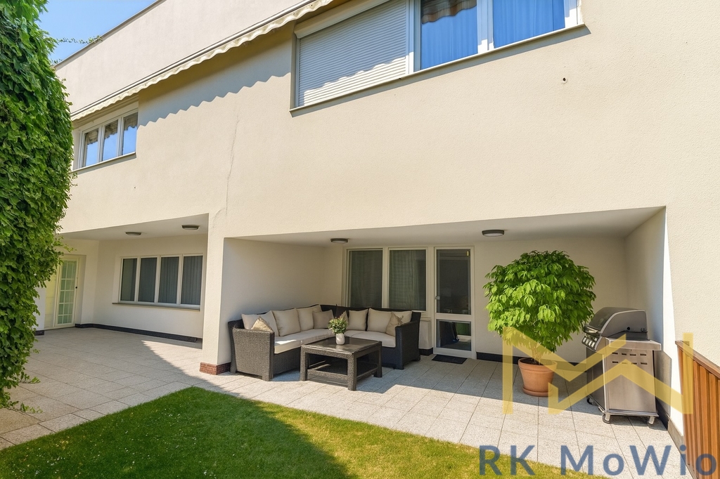 Půdorys dvoupatrového domu disponuje vstupní halou, světlým obývacím pokojem, plně vybavenou kuchyní, jídelnou, 4 ložnicemi ,2 koupelnami (vana, sprchový kout, toaleta a bidet), samostatnou toaletou, šatnou, fitness, prádelnou a kotelnou. K domu náleží prostorná zahrada s dvěma terasami a garáž s dvěma parkovacími stání. Vybavení bytu: kuchyňská linka (včetně lednice s mrazákem, sklokeramické varné desky, digestoře, myčky a elektrické trouby), vestavěné skříně, pračka a sušička, příprava pro vysokorychlostní internet, dřevěné podlahy a dlažba.