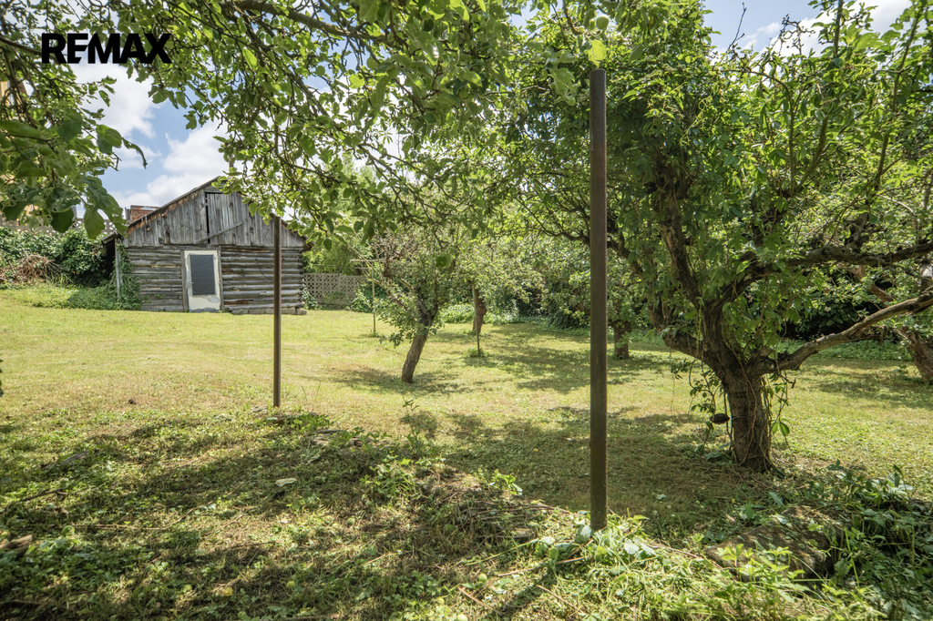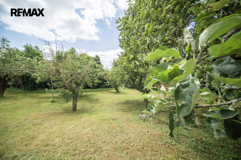 Zahrada je oplocená, s ovocnými stromy. Na pozemku vlastní studna.