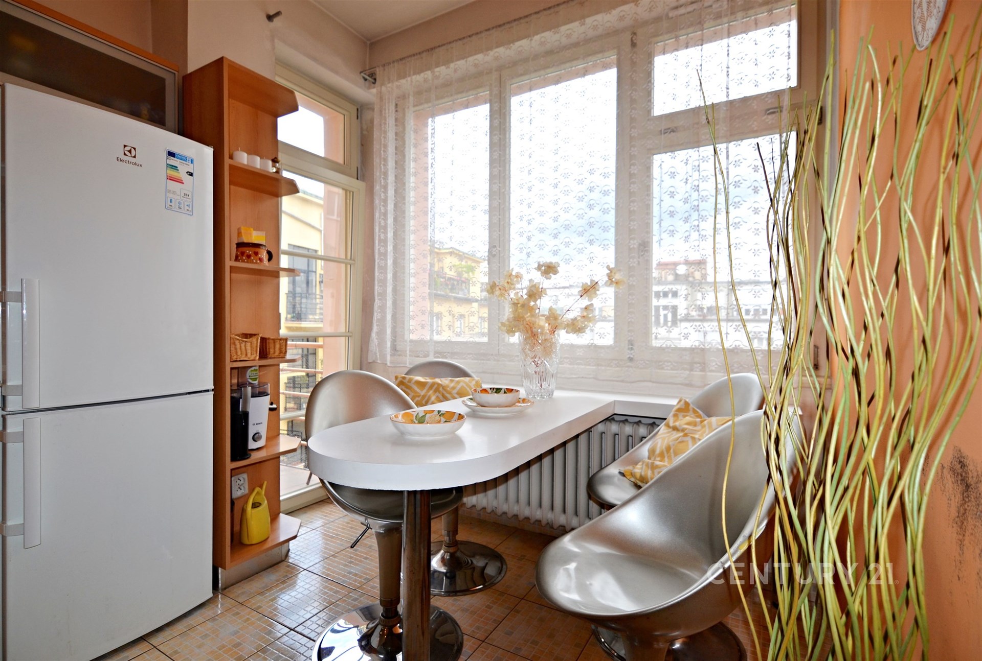 Námi nabízený byt je v průběhu doby v rekonstruovaném a udržovaném stavu, vhodný k rekonstrukci dle současných trendů, avšak zároveň ihned k užívání bez nutností technických investic. Za to Vám nabídne krásné zachovalé jasanové parkety ve všech pokojích, kamenné parapety u již zmíněných nových velkoformátových oken nebo třeba jen tradiční vzhled funkcionalistického balkonu do vnitrobloku. Současná dispozice bytu je vedena jako 4+1, nicméně může být i 5+kk či 5+1. Dominantou bytu jsou jistě dva propojené pokoje, které mají společně skoro 50 m2 a které mají zároveň vlastní vstup z haly, která jim předchází. V bytě je dále k dispozici kuchyně, ze které je vstup do pokoje, který dříve sloužil služebnictvu, komora, praktická spíž, koupelna se dvěma umyvadly a samostatná toaleta. K bytu je možné užívat sklep či společné prostory. V domě je vlastní plynová kotelna, která zajišťuje rozvod tepla a teplé vody.