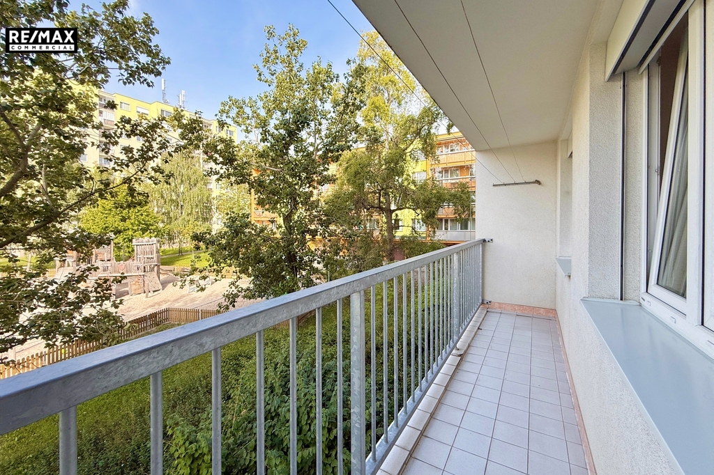 Z obývacího pokoje je přímý vstup na prostornou lodžii, odkud je krásný výhled do zeleného parku – ideální místo na ranní kávu nebo večerní odpočinek. K bytu patří také sklepní kóje.