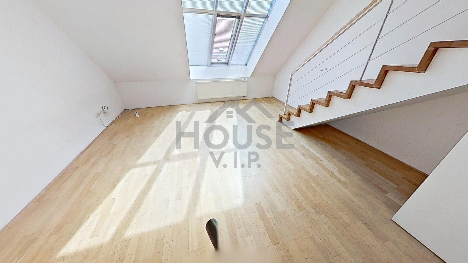 Prostor schodiště dodává interiéru vzdušný a prostorný nádech. Celý prostor se orientován od východu na západ což zaručuje dostatek světla po většinu dne i díky prosklenému vikýři v obývacím pokoji směrem na východ. Byt má instalovanou klimatizaci, která zpříjemní letní měsíce.