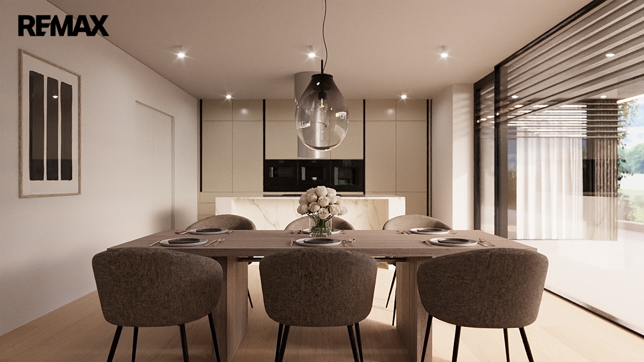 Součástí nabídky je projekt moderní solitérní vily s plochou střechou, která je navržena jako komfortní rodinné bydlení s důrazem na prostor, světlo a soukromí. Vila má tři podlaží (1. podzemní a 2 nadzemní) a celkovou podlahovou plochu cca 303 m². Dispozičně nabízí tři prostorné ložnice, dvě koupelny, velkorysý obývací prostor s kuchyňským a jídelním koutem a přímým vstupem na rozlehlou terasu.