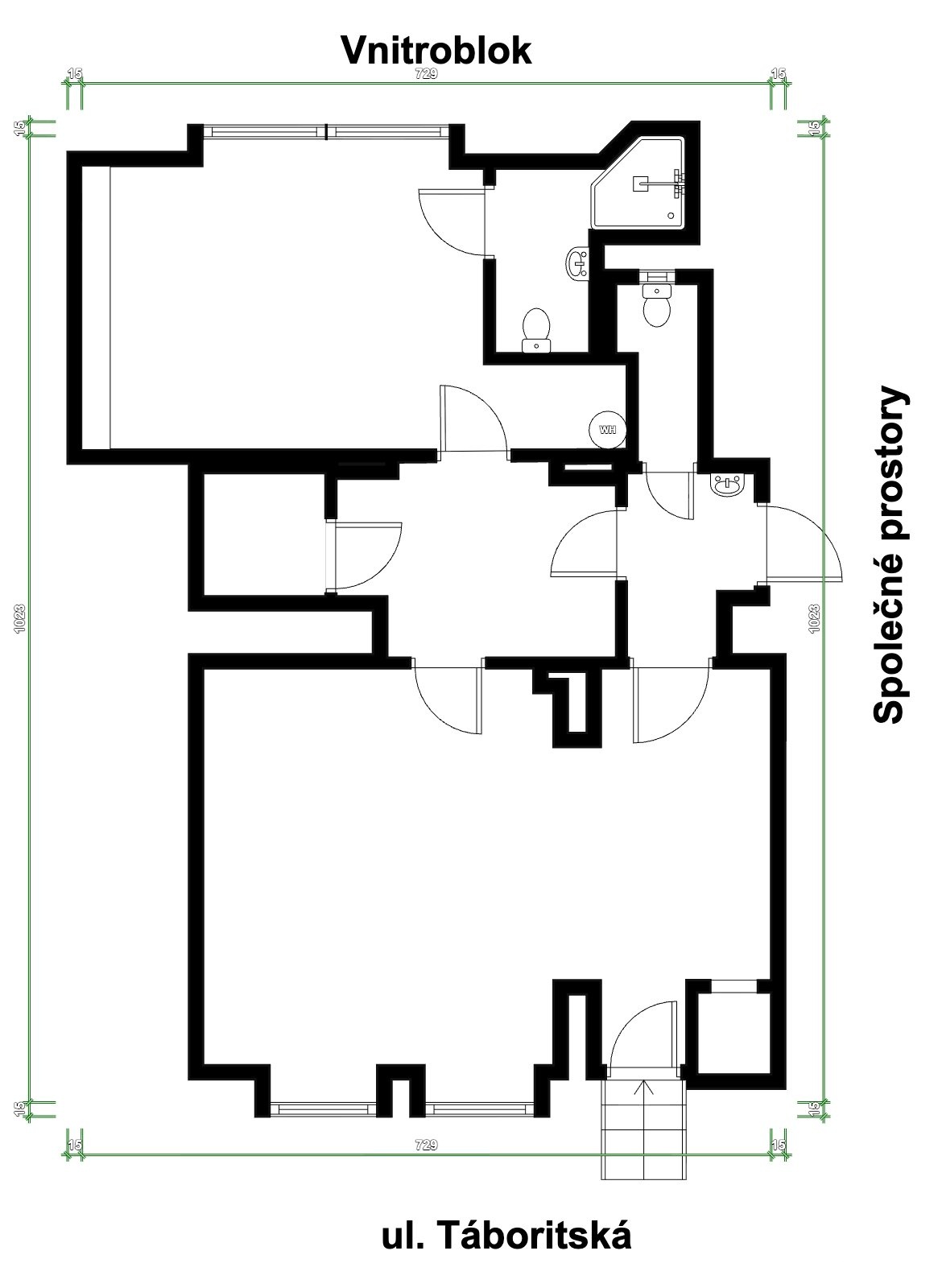 • Přímý vstup z ulice Táboritská (možnost výlohy/reklamy).