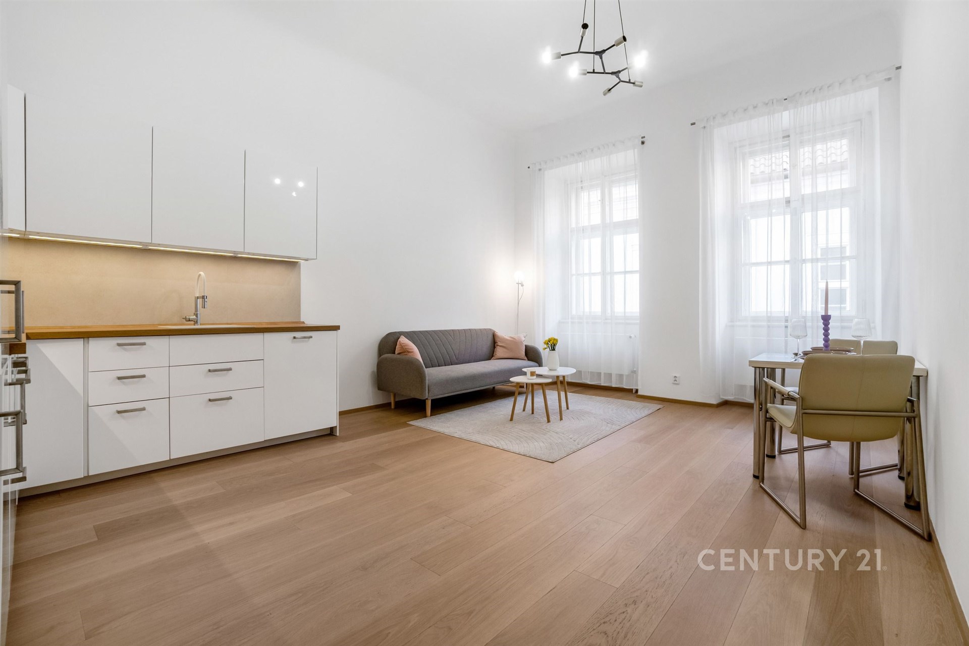 Takový je tento prémiový byt 2+kk po citlivé rekonstrukci s vysokými stropy a elegantní dubovou podlahou určený pro solidního nájemníka, který hledá stylové bydlení v tradičním cihlovém domě s atmosférou v centru Prahy a chce mít po ruce MHD, obchody i zábavu.