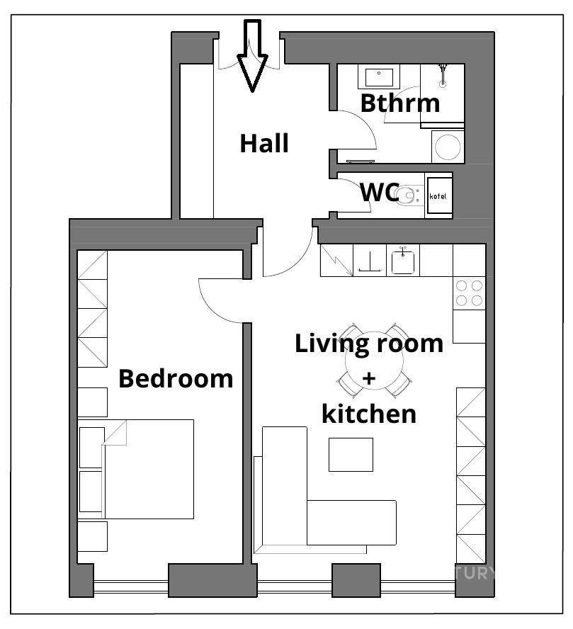 - Dispozice bytu: 2+kk