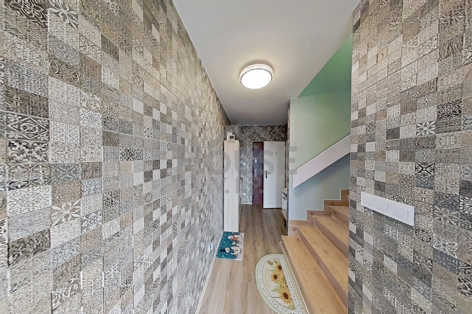 Ve spodním patře se nachází vstupní hala, samostatný pokoj, koupelna se sprchou a toaletou a komora. Horní patro nabízí předsíň, další komoru, koupelnu, samostatné WC, plně vybavenou kuchyni (Electrolux, Gorenje, Bosch), obývací pokoj a dva další pokoje. Každé patro má vlastní koupelnu i toaletu, což zajišťuje vysoký komfort i pro vícečlennou domácnost.