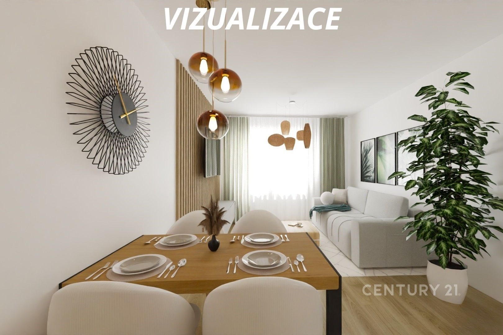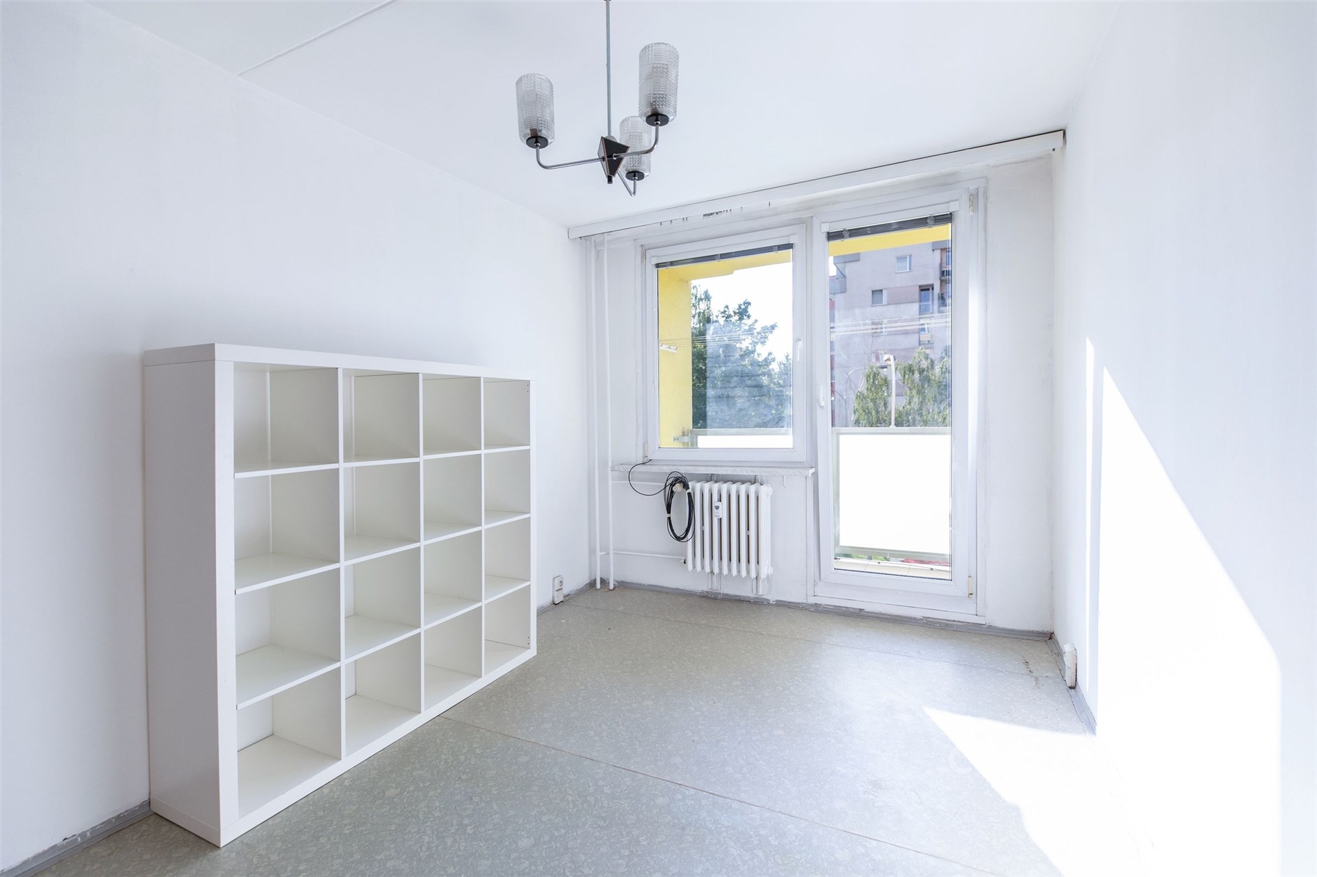 Byt se nachází ve 2. patře udržovaného panelového domu s výtahem a má velmi praktickou dispozici. Dominantou je světlý obývací prostor s kuchyní, který tvoří srdce celého bytu. Dvě samostatné a neprůchozí ložnice zajišťují soukromí i variabilitu využití – z jedné z nich je vstup na zasklenou lodžii, ideální pro ranní kávu nebo večerní odpočinek. Samozřejmostí je i sklepní kóje.