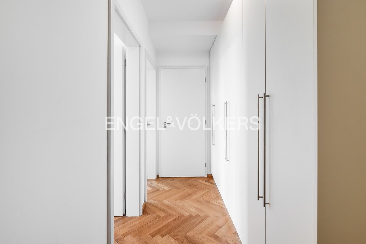 Byt se nachází ve zrekonstruovaném činžovním domě s výtahem a sklepem a skládá se z prostorné vstupní chodby s vestavěnými skříněmi, obývací pokoj je spojen s kompletně vybavenou kuchyňskou linkou. Z obývacího pokoje je přístupná plnohodnotná ložnice