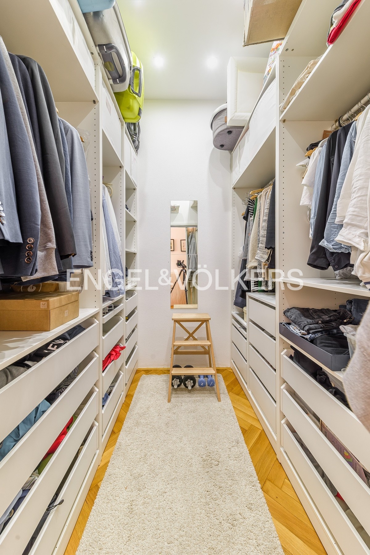 Celý byt prošel rekonstrukcí v roce 2014, která kladla důraz na praktičnost a standard – repasované dřevěné parkety, dřevěná okna a vestavěné úložné prostory.