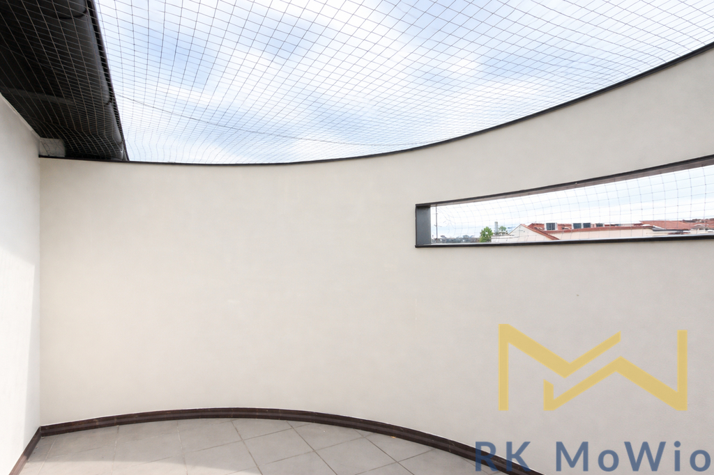 Půdorys bytové jednotky je řešen jako dvoupodlažní a disponuje vstupní chodbou, obývacím pokojem, samostatnou kuchyní s jídelní částí, dvěma ložnicemi, dvěma koupelnami (vana, sprchový kout, umyvadlo, toaleta) a terasou orientovanou do klidného prostředí. Vybavení bytu zahrnuje kuchyňskou linku se spotřebiči a další prvky odpovídající komfortnímu městskému bydlení. Mezonetové uspořádání přirozeně odděluje denní a klidovou část a zároveň dodává interiéru vzdušnost a dostatek soukromí.