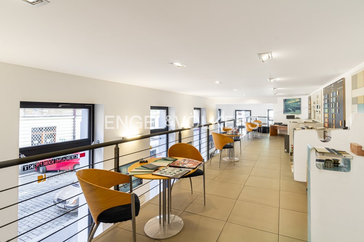 Nabízíme k pronájmu unikátní, multifunkční nebytový prostor ideální pro zřízení gastronomického podniku nebo showroomu. Jednotka se nachází v atraktivní lokalitě pražských Vršovic a disponuje přímým vstupem z ulice s prosklenými dveřmi, které doplňují velká prosklená okna podél celého objektu, zajišťující vynikající viditelnost a dostatek denního světla. Interiéru dominuje elegantní kamenná dlažba a designové točivé schodiště. Toto schodiště funkčně propojuje hlavní prostornou část v přízemí s horní mezonetovou jednotkou, která je ideální pro vytvoření klidnějšího sezení, kanceláře nebo VIP zóny.