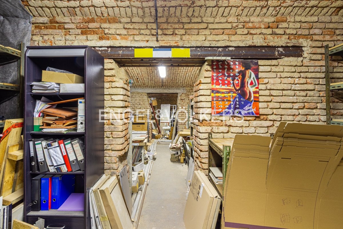Schodiště dále zpřístupňuje i suterénní prostor, který v případě gastro provozu nabízí skvělý potenciál pro vybudování útulného posezení, vinného sklepa nebo soukromého salonku. Současná dispozice je prakticky rozdělena na hlavní prodejní či hostinskou plochu a komplexní zázemí. Klíčovou výhodou pro gastro je samostatná, prostorná místnost, v současnosti využívaná jako kancelář, kterou lze snadno adaptovat na plnohodnotnou kuchyň. Na tuto místnost navazuje sklad, jenž je prakticky napojený i na společnou chodbu budovy a hlavní vstup, což výrazně usnadňuje zásobování.