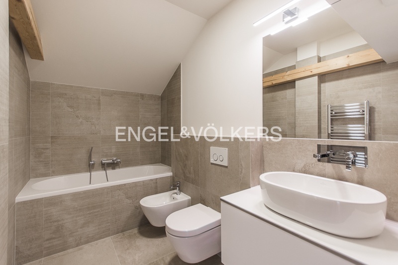 První ložnice orientovaná do tichého vnitrobloku je propojená s vlastní koupelnou a nabízí dostatek úložného prostoru. Prostorná koupelna se sprchovým koutem, toaletou a umyvadlem. Druhá ložnice s vlastní koupelnou a šatnou je unikátní díky dodatečné galerii se zajímavě řešeným střešním oknem. Moderní rodinná koupelna nabízí vanu, umyvadlo, toaletu a bidet. Dodatečná koupelna se sprchou je přístupná y obývacího pokoje.