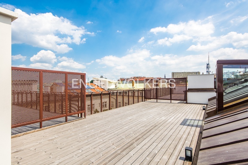 Střešní terasa o rozloze 63 m2 je ideálním místem k posezení s rodinou či přáteli. Celý byt je zařízený kvalitním italským nábytkem. Úložné prostory jsou řešené formou vestavěných skříní. Celoroční komfort nabízí podlahové topení v celém bytě a klimatizace. Přímo v domě se nachází kompletně vybavená posilovna přístupná všem nájemcům. V podzemních garážích je možnost si pronajmout parkovací stání.