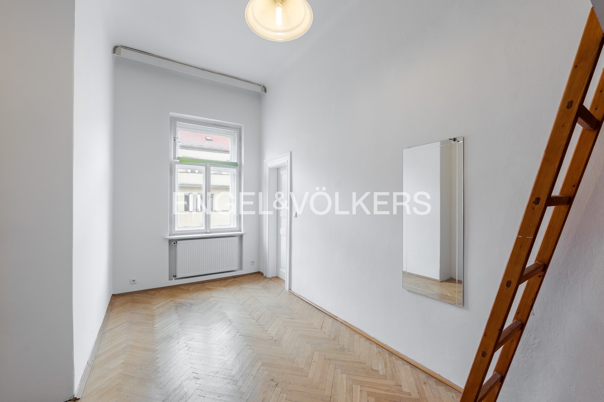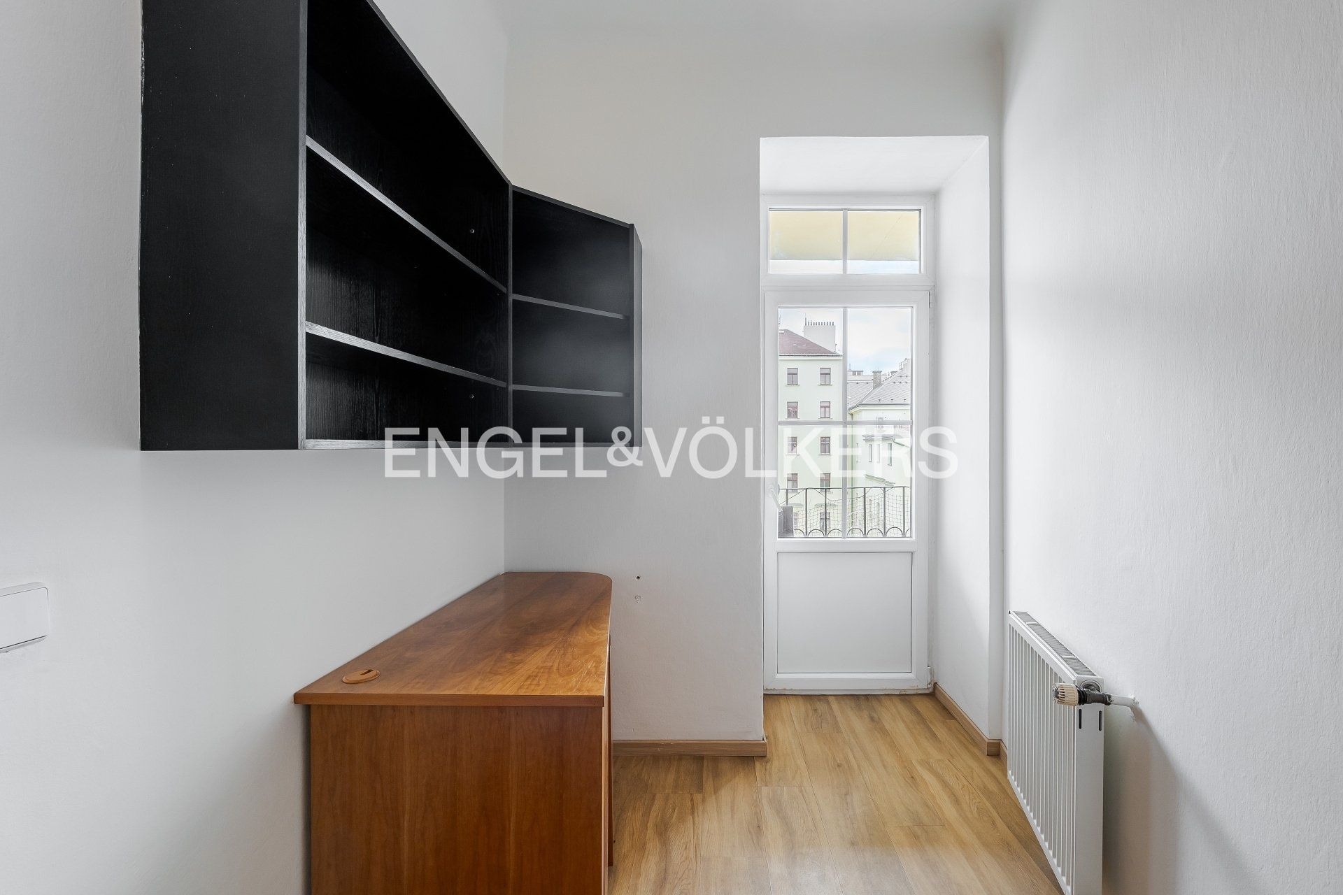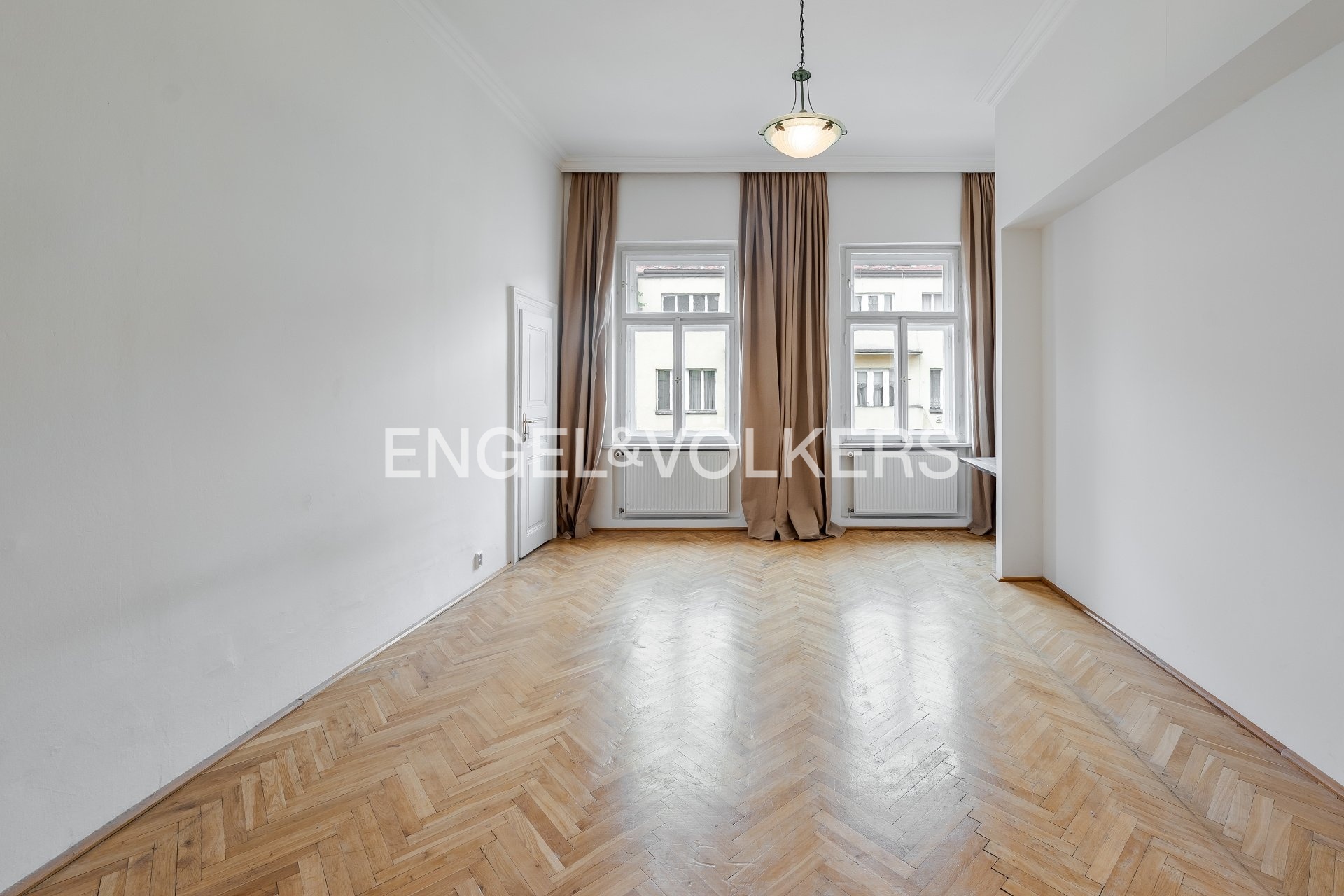 Interiér si zachoval řadu původních prvků, jako jsou vysoké stropy, špaletová okna s dvojskly (balkonové dveře do vnitrobloku jsou plastové) či typické dvoukřídlé dveře, které podtrhují vzdušnost a příjemnou atmosféru bytu. Jednotka je v udržovaném stavu, podlahy v pokojích tvoří parkety a vinyl. Vytápění i ohřev vody zajišťuje kondenzační kotel, energetická náročnost budovy je třídy D, měsíční náklady se pohybují okolo 7 000 Kč. Společné prostory domu jsou pečlivě udržované a zaujmou i dekorativními stropními malbami, samozřejmostí je výtah. Dům má zateplenou střechu a fasáda prošla během posledních deseti let rekonstrukcí.