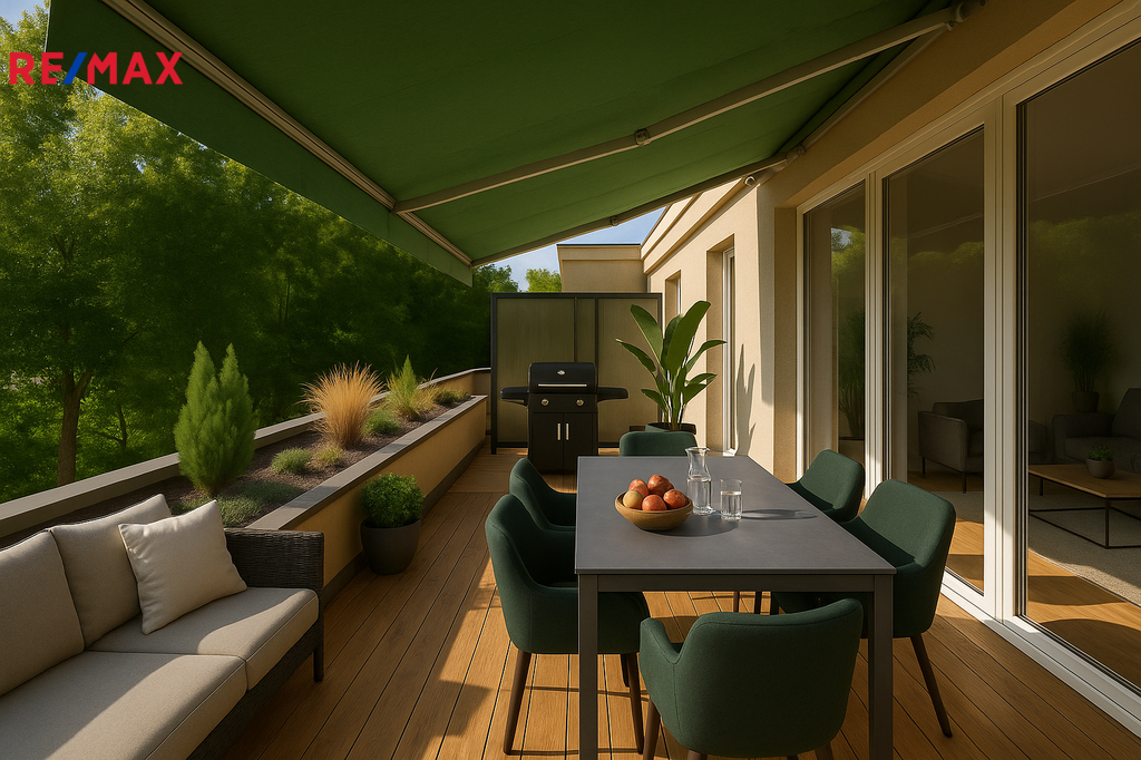 Byt o dispozici 4+1, 95 m² v ulici Pod Skalkou kombinuje výhledy do zeleně s velkou terasou 20m² orientovanou na jih a vynikající dopravní dostupností.