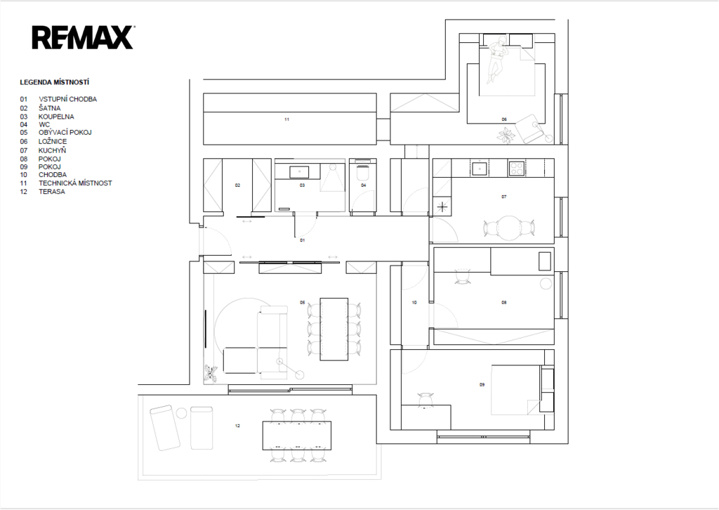 Nachází se v prvním patře menšího bytového domu (pouze 6 byt.jednotek), v jedné z nejklidnějších ulic Smíchova. Byt má řadu benefitů. Tu představuje především velká terasa 20 m². Ideální pro snídaně i večerní víno při západu slunce. Dále pak velký prosvětlený pokoj s přímým vstupem na terasu. Tři samostatné ložnice a kuchyň. Příjemným doplňkem jsou rovněž i nízké provozní náklady.