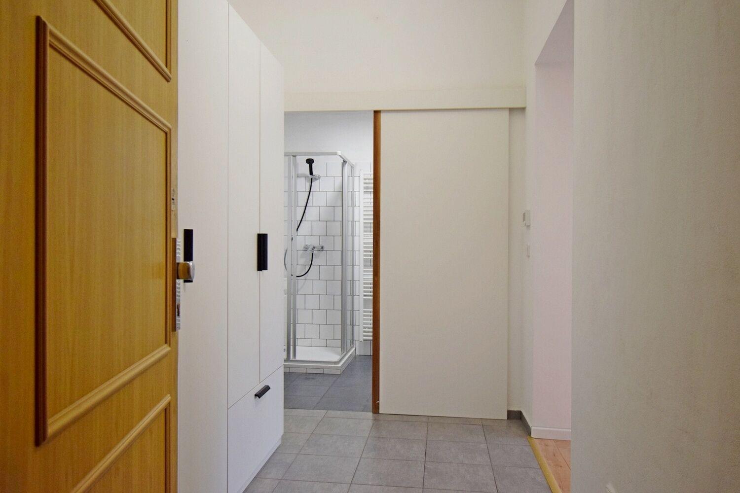 Velmi hezký byt 2+kk po kompletní rekonstrukci v cihlovém domě 3 minuty chůze od stanice metra Vyšehrad. Byt je situovaný do klidného a tichého vnitrobloku a má novou kuchyňskou linku, vestavěné skříně v ložnice a šatní skříně v předsíni. Koupelna se sprchovým koutem je vybavena topným žebříkem a je společná s WC včetně pisoáru. Parkování před domem, výborná občanská vybavenost. Volné ihned.
