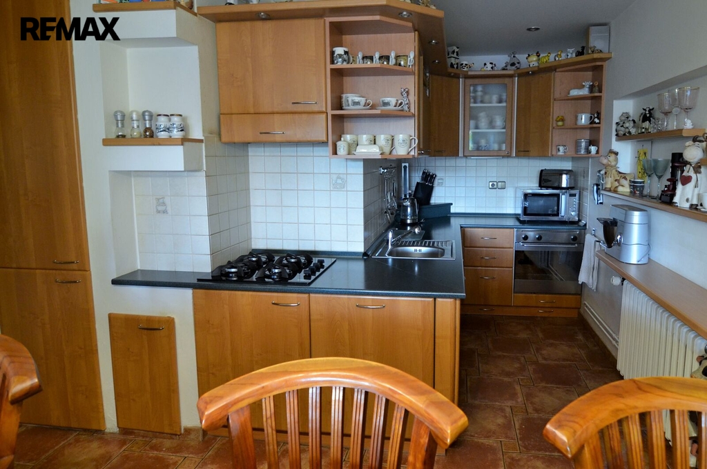 2 kuchyně otevřené do 2 velkých obývacích pokojů s balkóny (směr jih) plus 5 ložnic, 2 koupelny, 3 WC, velká šatna, terasa a zahrada činí z domu ideální prostor pro velkou rodinu, soužití více generací nebo i soukromou školku.