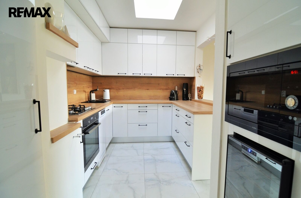 Dům má novou střechu, obě kuchyně a koupelny po rekonstrukci, nové průčelí domu a vydlážděná parkovací místa v místě bývalé předzahrádky. Uzamykací garáž pro dva vozy je velkým bonusem, v této ulici jsou přidané garáže vybudované pouze u dvou domů, kde to povoloval terén vůči sousední ulici Wolfova.