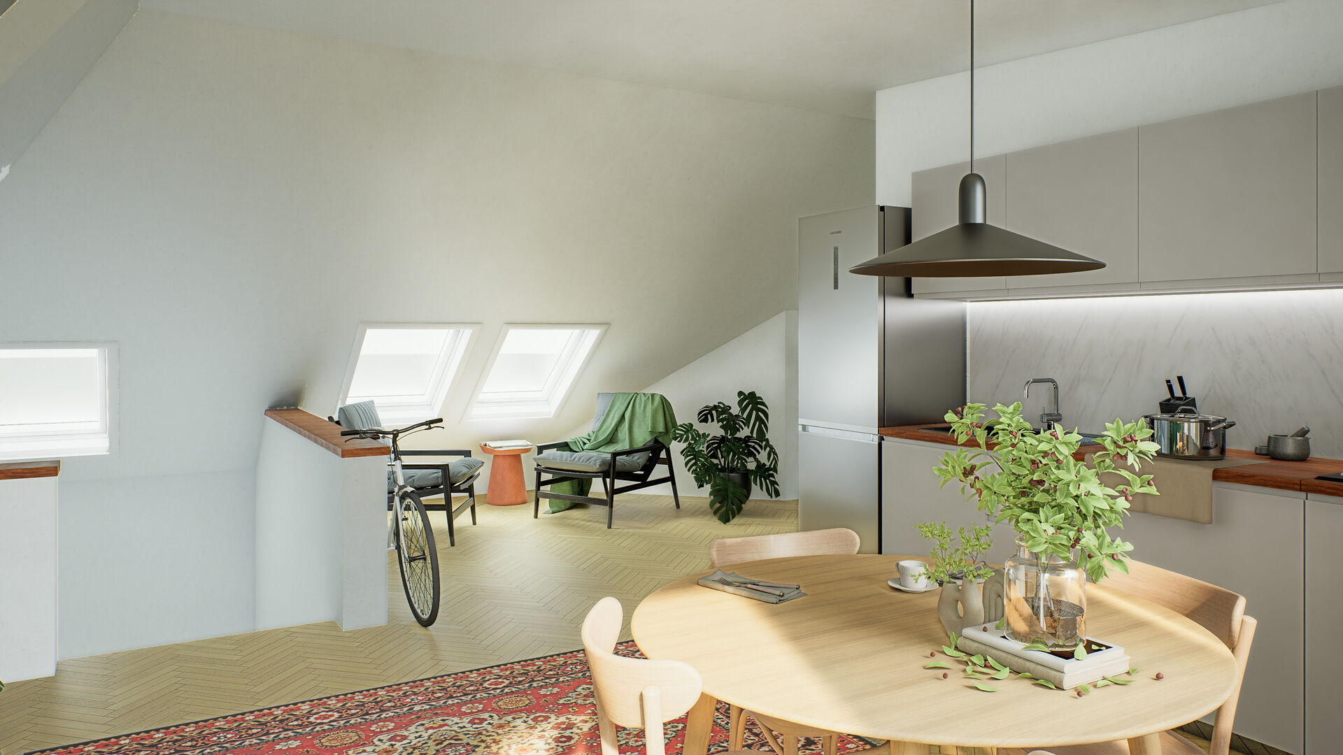 • Byt 1+kk/2+kk (50 m²) v 1. podzemním podlaží je útulný a je ideální jako 1. vlastní bydlení. Bude mít také své parkovací místo a sklep. Měsíční nájem činí 16 000 Kč.