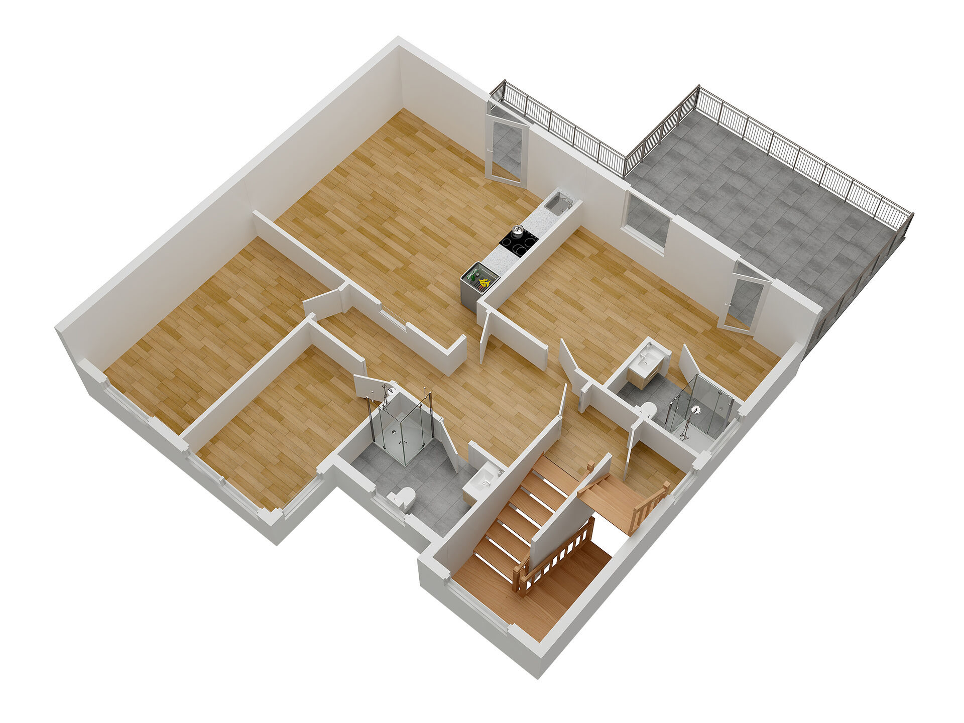 • Byt 4+1 (117 m²) v 1. nadzemním podlaží disponuje dvěma koupelnami, moderní dispozicí a přímým přístupem do zahrady. Z obývacího pokoje a jídelny nebo ložnice bude výstup na terasu, ze které se plynule přejde na zahradu. Měsíční nájem činí 40 500 Kč.