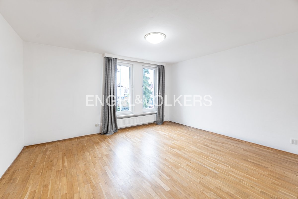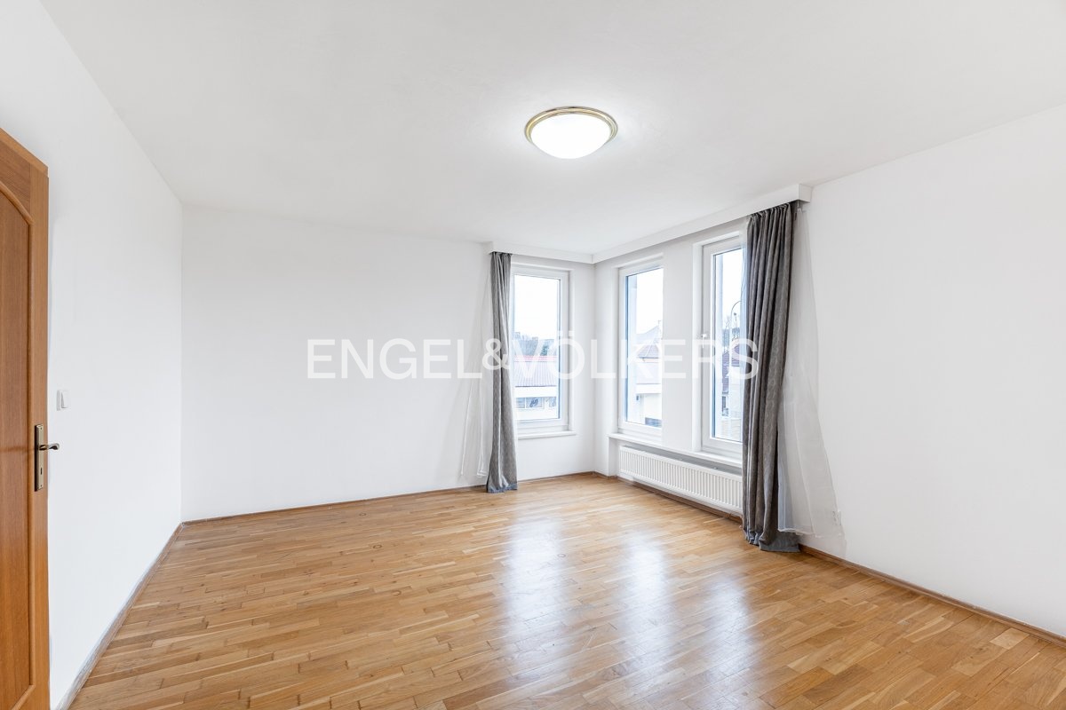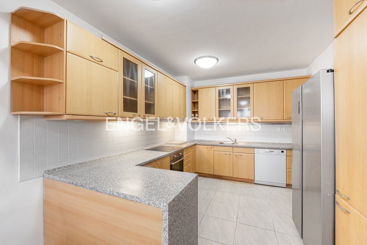 Byt nabízí velmi komfortní a praktické dispoziční řešení. K dispozici jsou čtyři samostatné pokoje, velkorysý obývací prostor s kuchyňským koutem, jedna koupelna a dvě samostatné toalety. Koupelna prošla nedávnou rekonstrukcí a nabízí moderní a čistý design. Celkový prostor působí vzdušně a je ideální jak pro rodinné bydlení, tak i pro náročnější klienty hledající dostatek prostoru a soukromí. Součástí pronájmu je také parkovací místo v garáži, což zajišťuje pohodlné parkování v této vyhledávané lokalitě.
